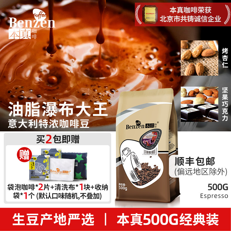 📚 本真意大利意式浓缩拼配咖啡豆新鲜中烘焙香浓500g油脂美手冲拿铁