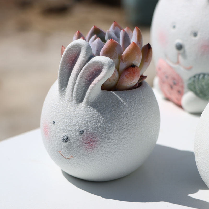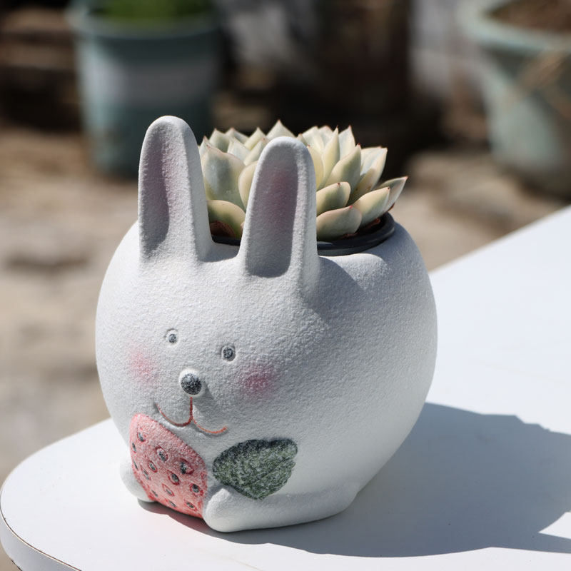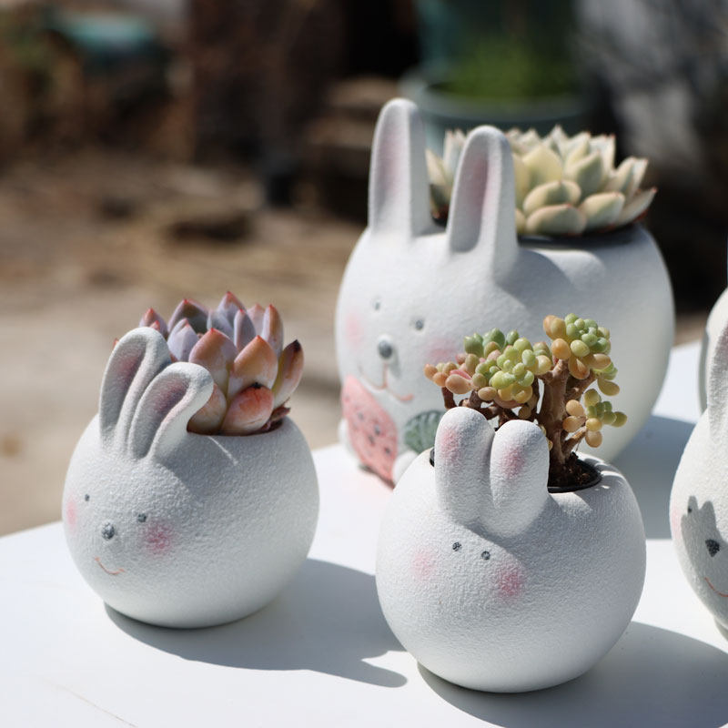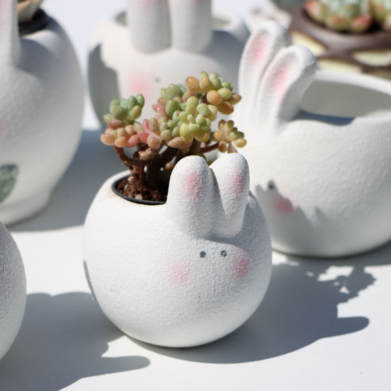 📚 可爱小兔子多肉花盆粗陶手绘盆创意雪绒萌兔简约透气陶盆桌面萌趣