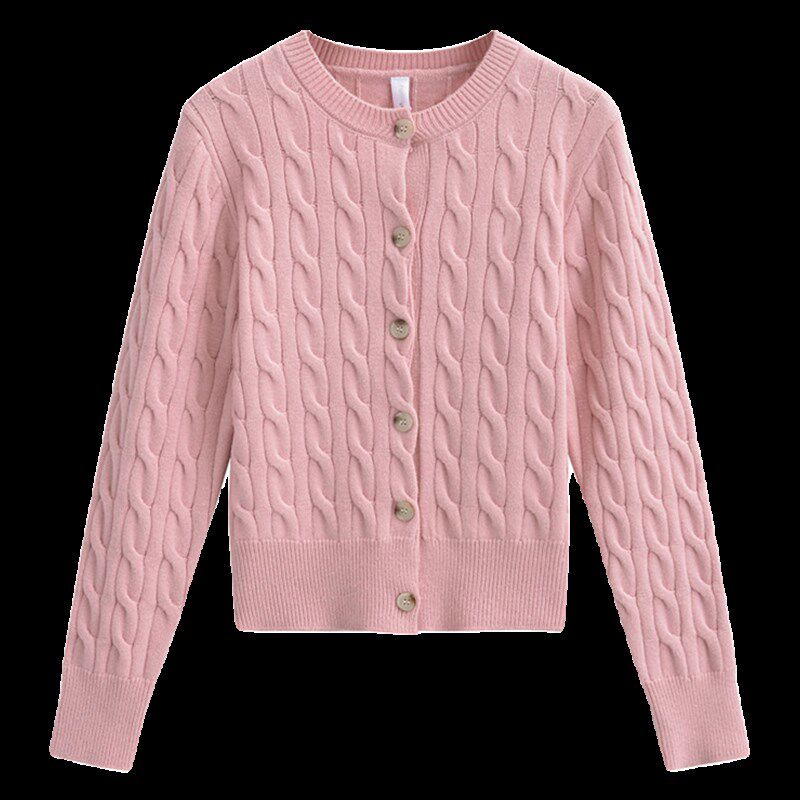 📚 【包邮】学院风粉色短款麻花编织针织开始女修身百搭打底衫毛衣潮