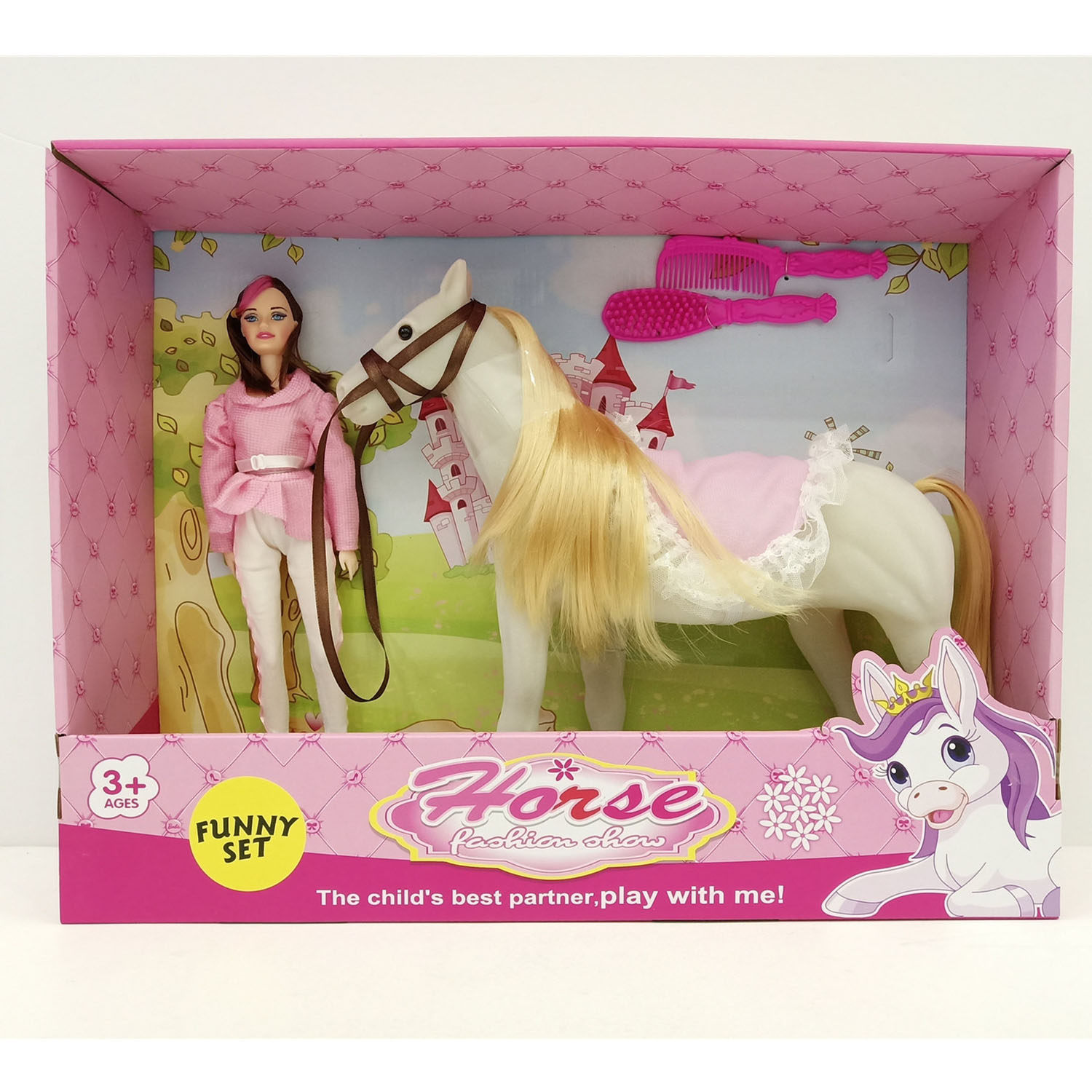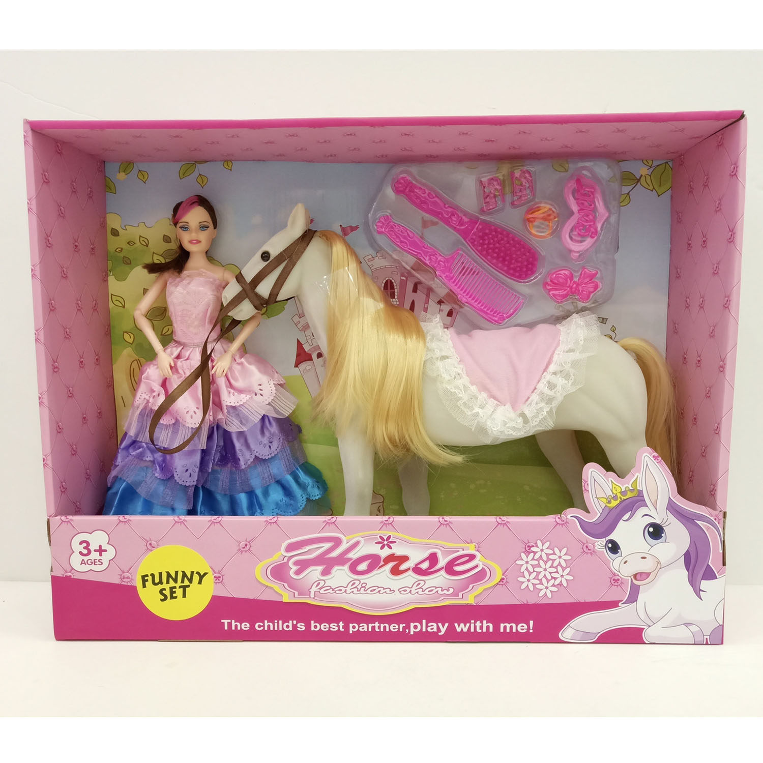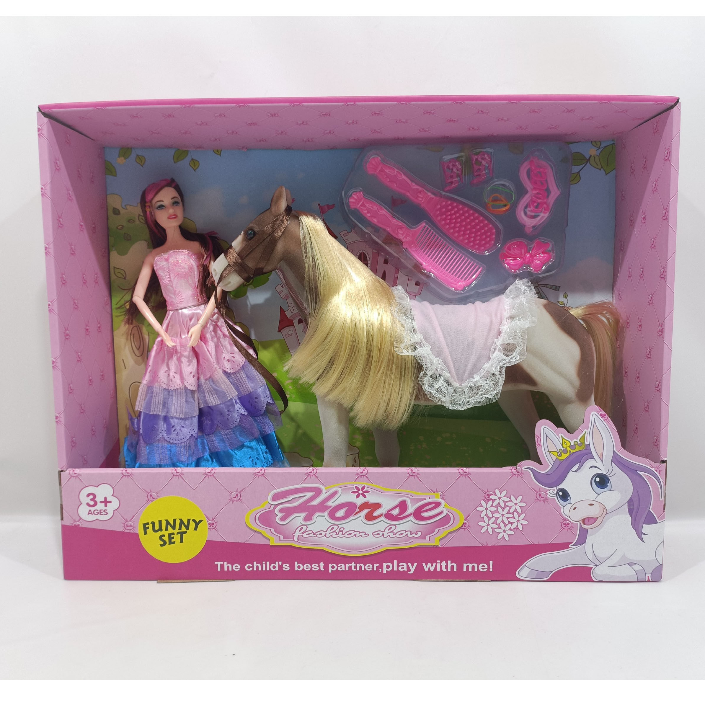 📚 45x11.5x37cm出口儿童仿真植绒马与芭比公主玩具 Horse Toy Set