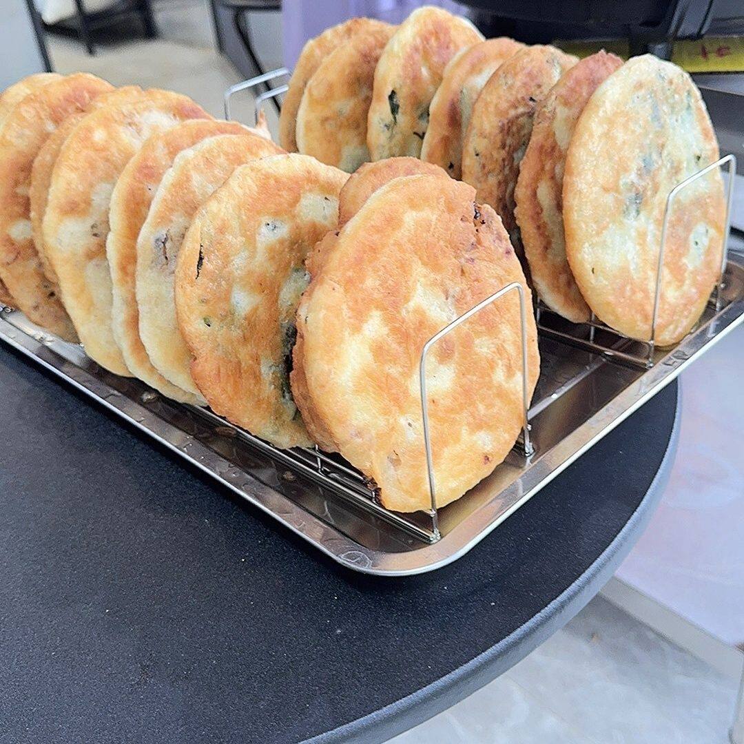 📚 不锈钢卷饼架不锈钢葱肉油饼沥油架油糍粑控油架网红摆摊肉饼架子