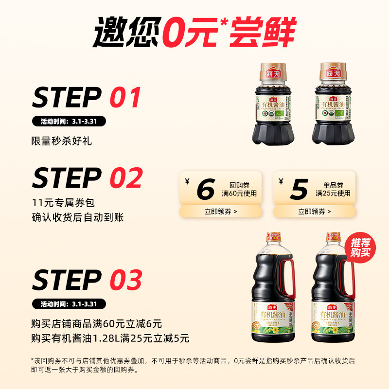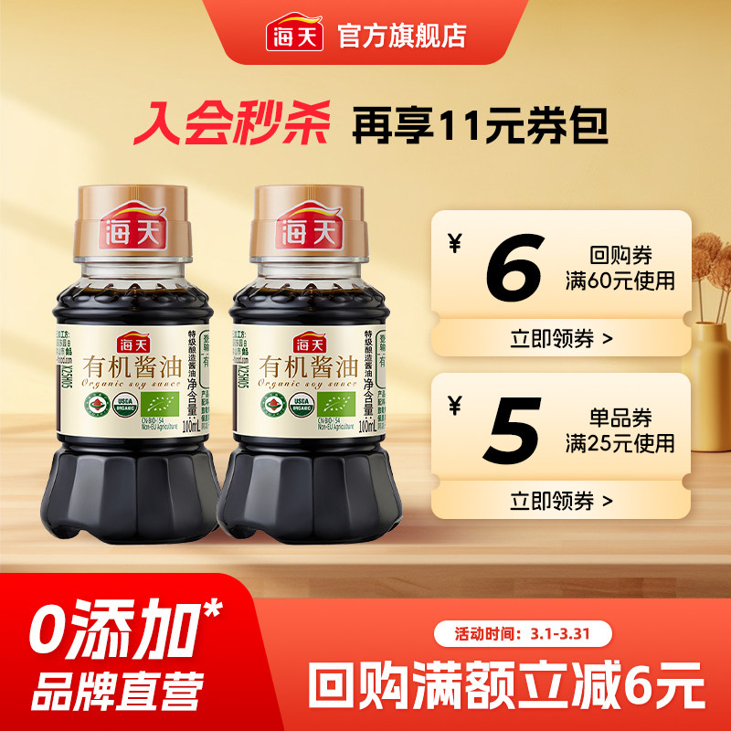 📚 【尝鲜秒杀】海天有机酱油100ml*2小瓶装非转基因黄豆酿造