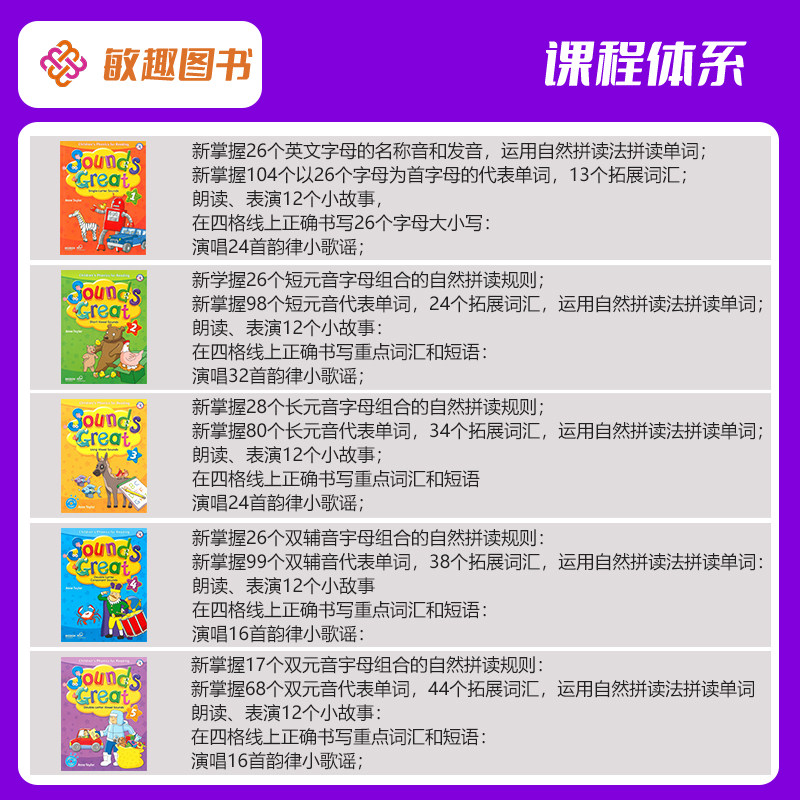 📚 正版正版正版 Sounds Great 原版6-10岁少儿基础自然拼读 寒暑假短期专项练习发音规则 配套故事小读本 带APP