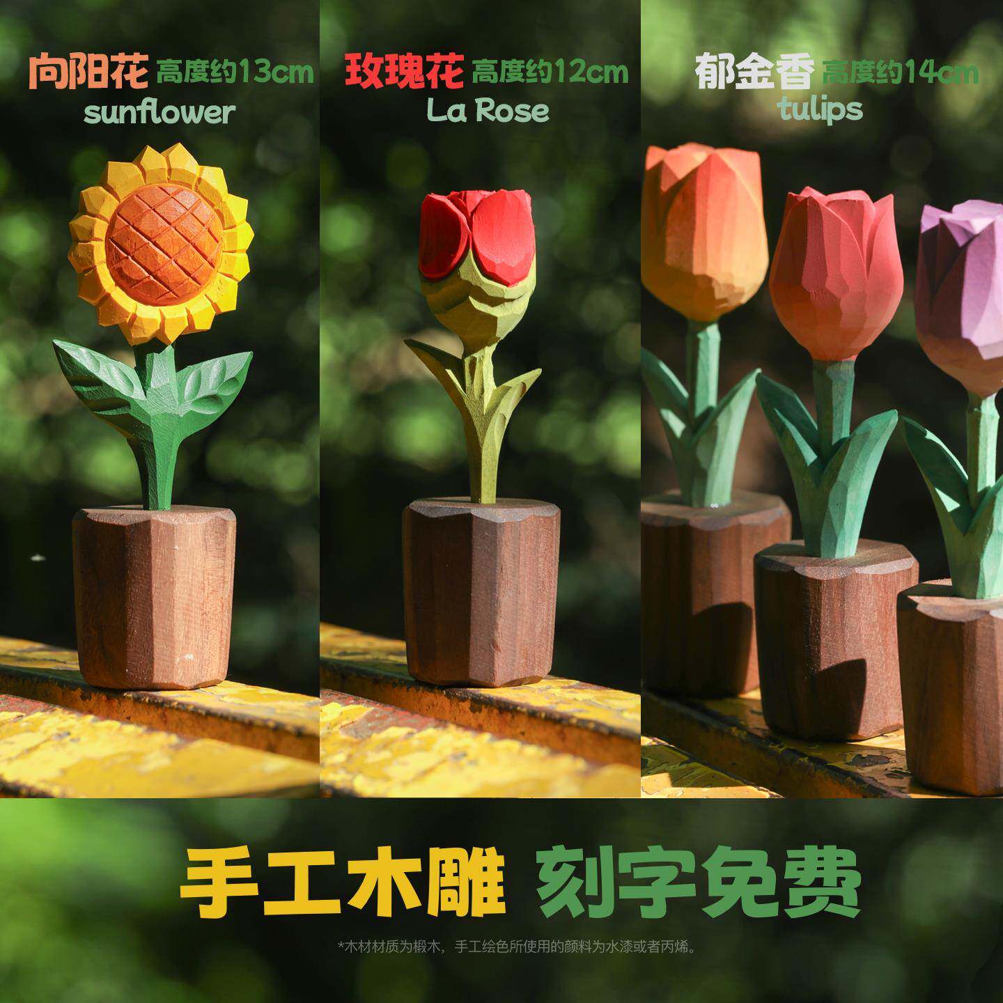 📚 永不凋谢的花!手工木雕向日葵摆件创意桌面家居装饰品生日礼物