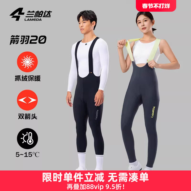 📚 兰帕达箭羽20抓绒骑行裤5-15度双箭头背带带口袋男女秋冬自行车