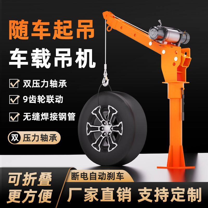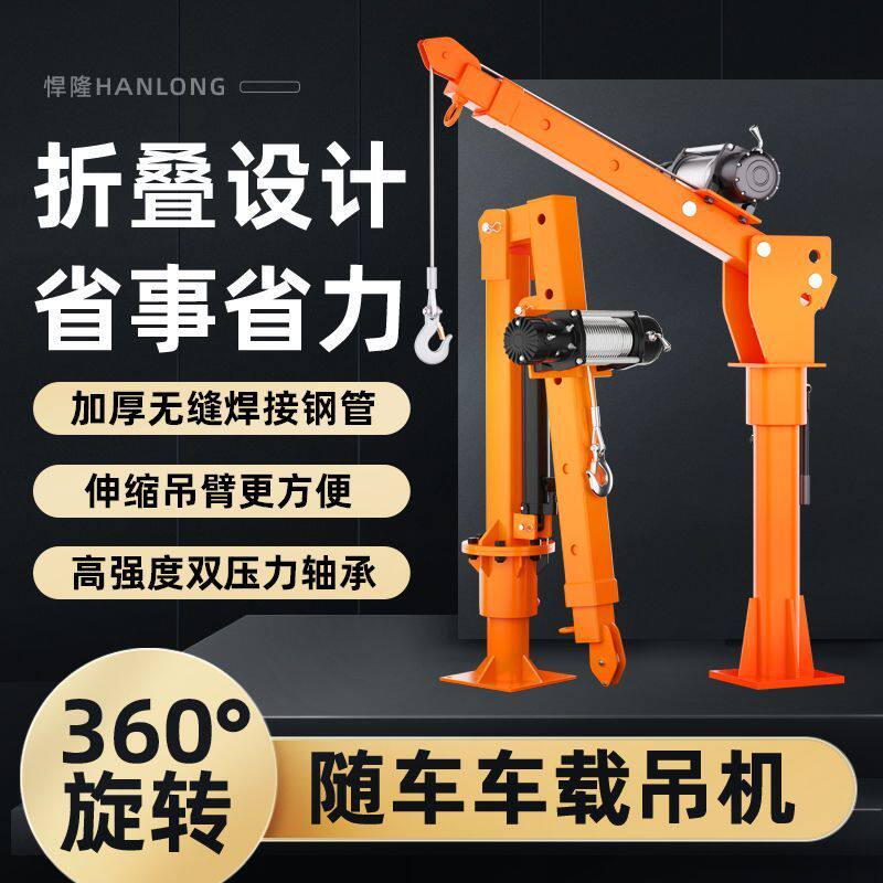 📚 车载吊机1吨12V/24V小型车用吊运机220V家用电动葫芦随车吊起重机
