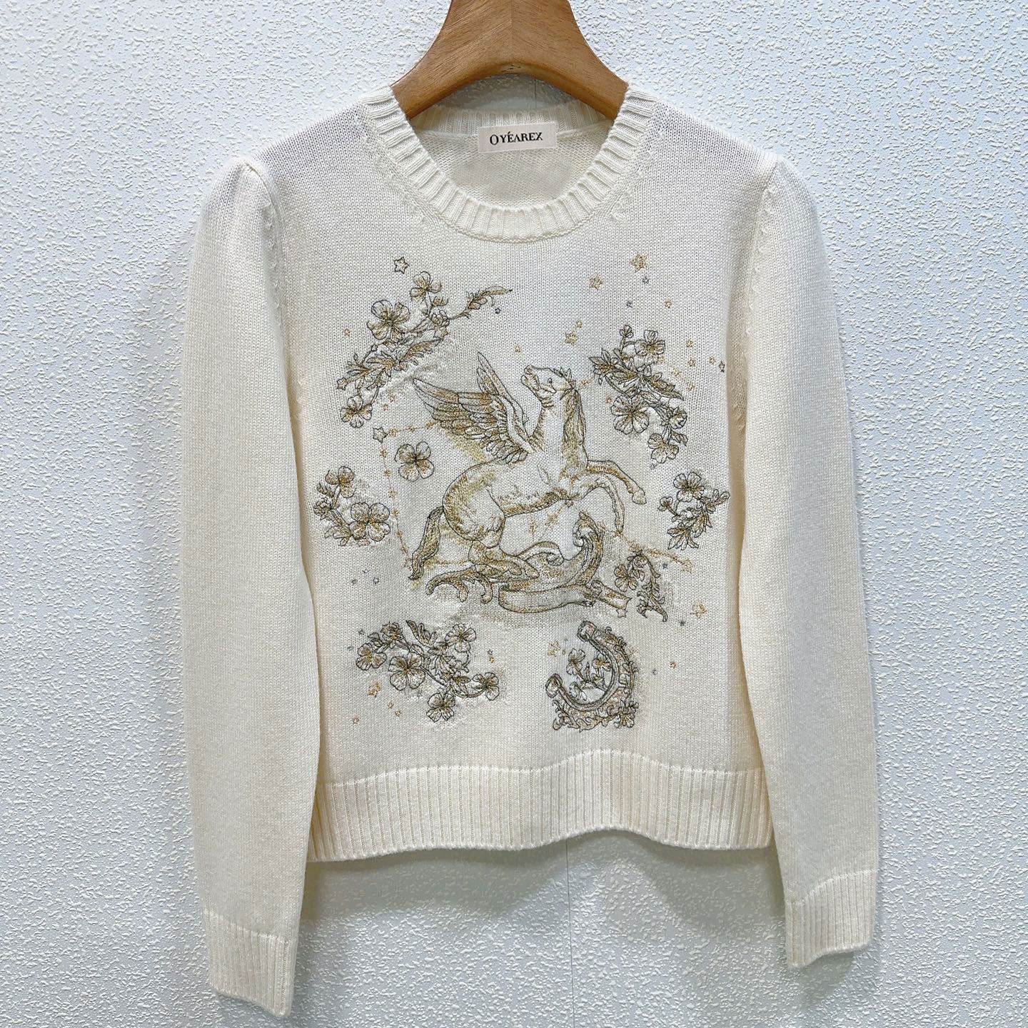 📚 南油高端女装 明星同款重工幸运小马刺绣套头圆领长袖针织衫毛衣