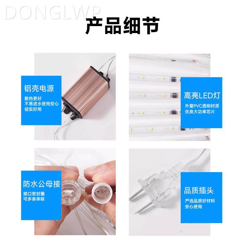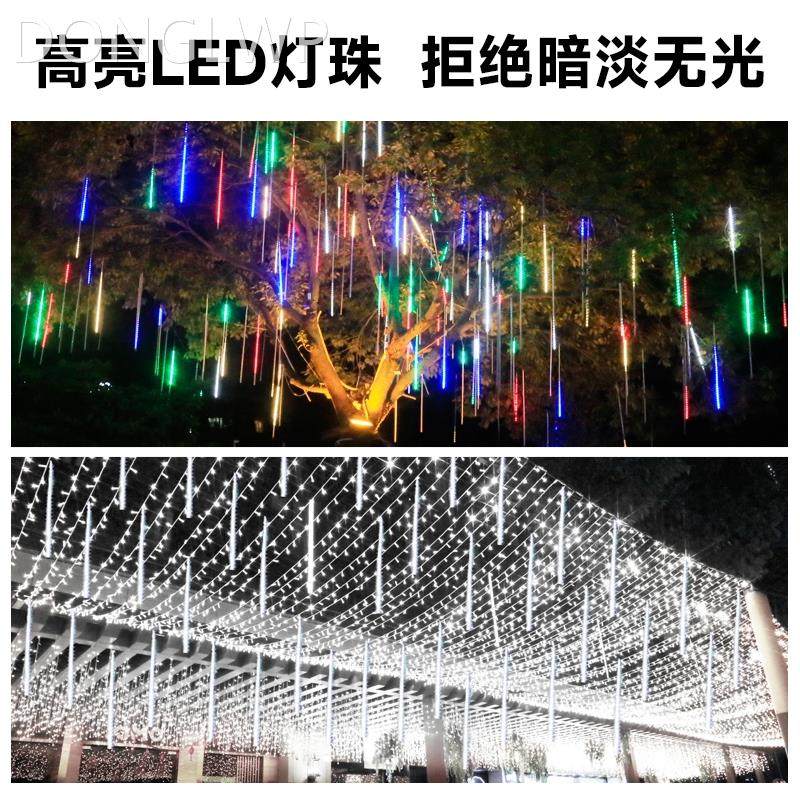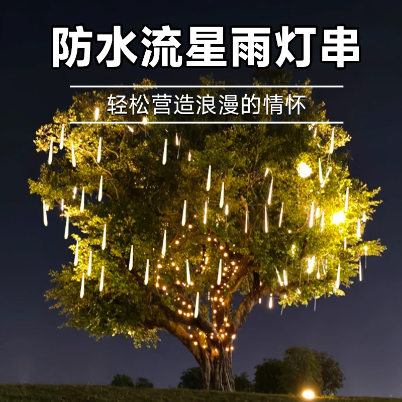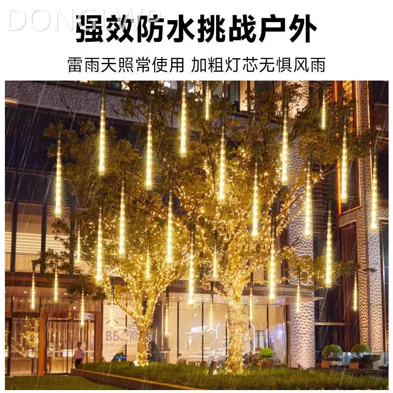📚 流星雨LED灯户外防水氛围灯太阳能瀑布灯彩灯串灯树干庭院装饰灯