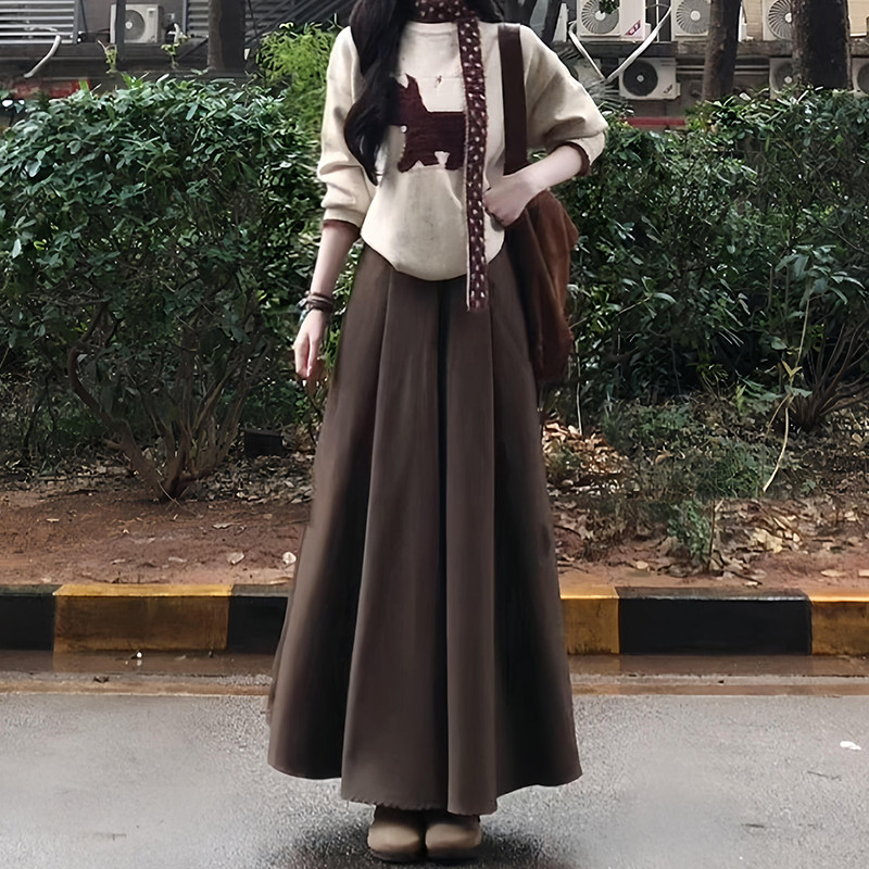 📚 美拉德梨形伯克利棕色半身裙子女大码a字伞裙大裙摆垂感百褶长裙