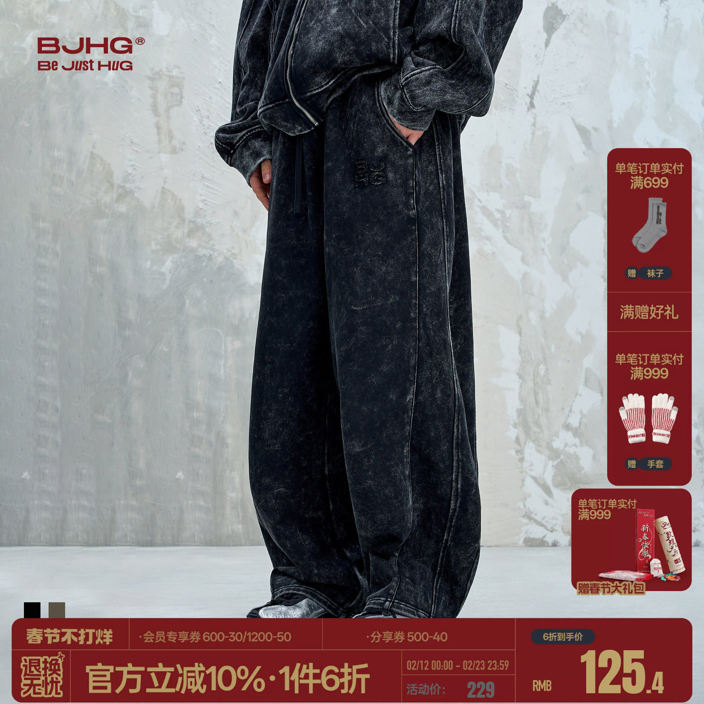 📚 BJHG不计后果复古水洗卫裤男款春季潮牌休闲直筒运动套装男士裤子