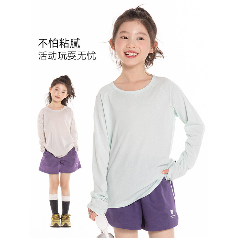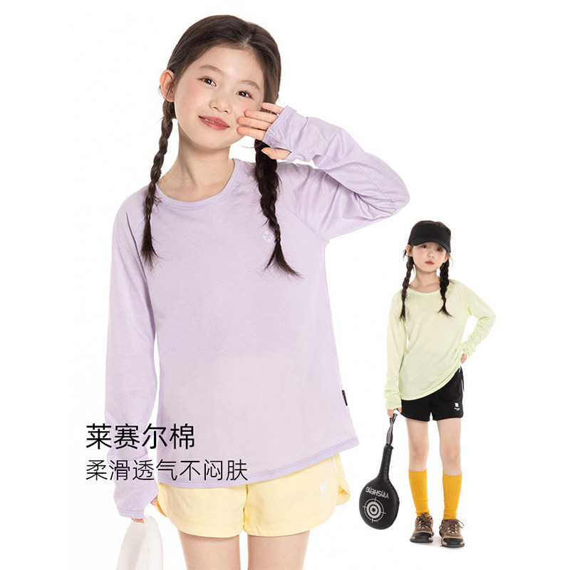 📚 女童尖叫薄运动T恤2025夏季新款儿童莱赛尔天丝轻薄透气长袖上衣