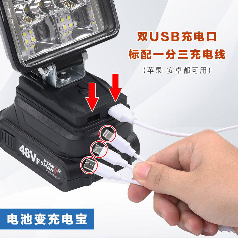 📚 牧田款工作灯LED探照灯锂电池电灯适用电扳手电池应急灯带USB插口