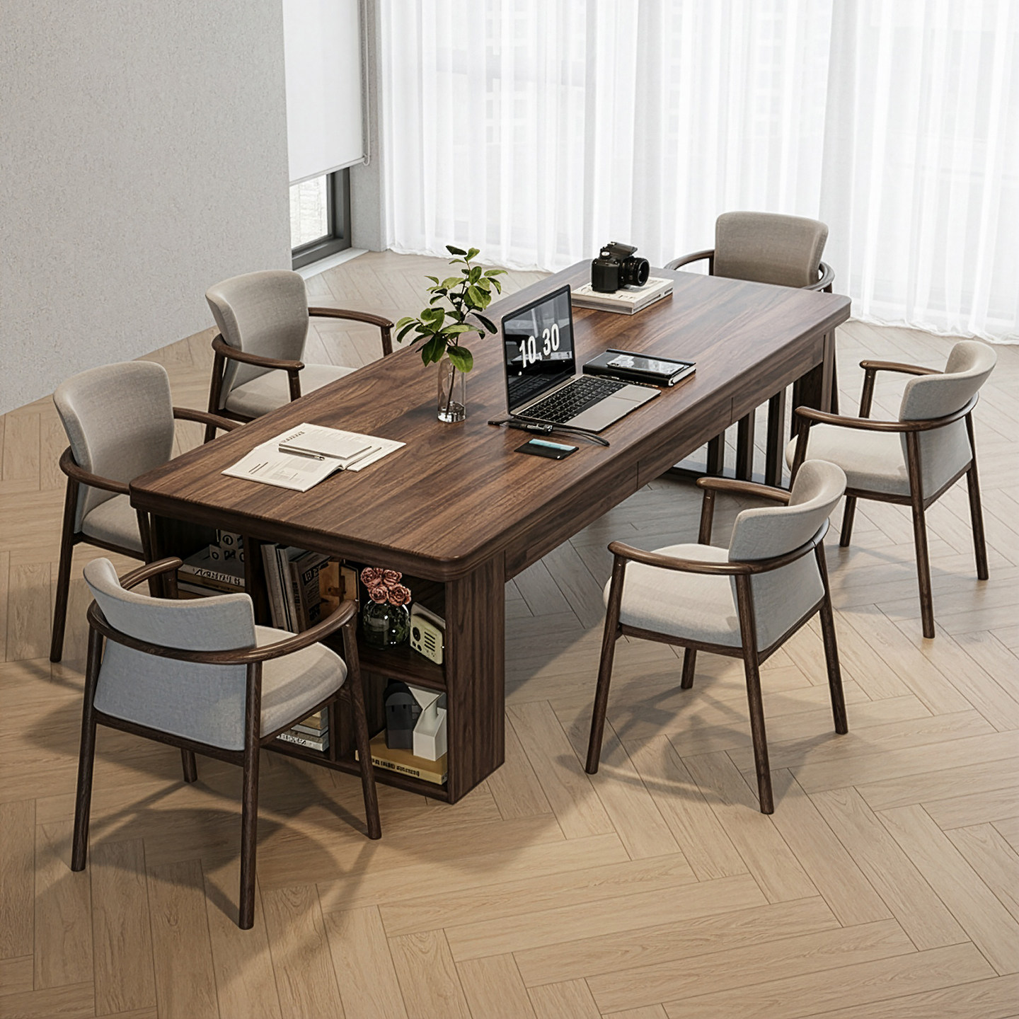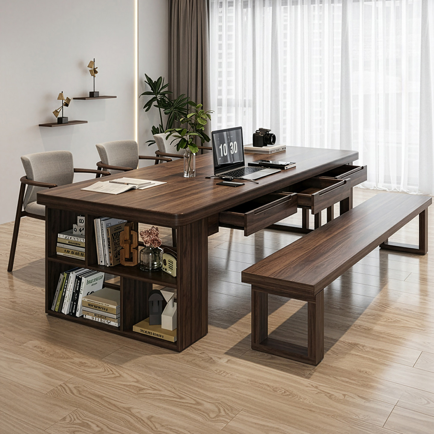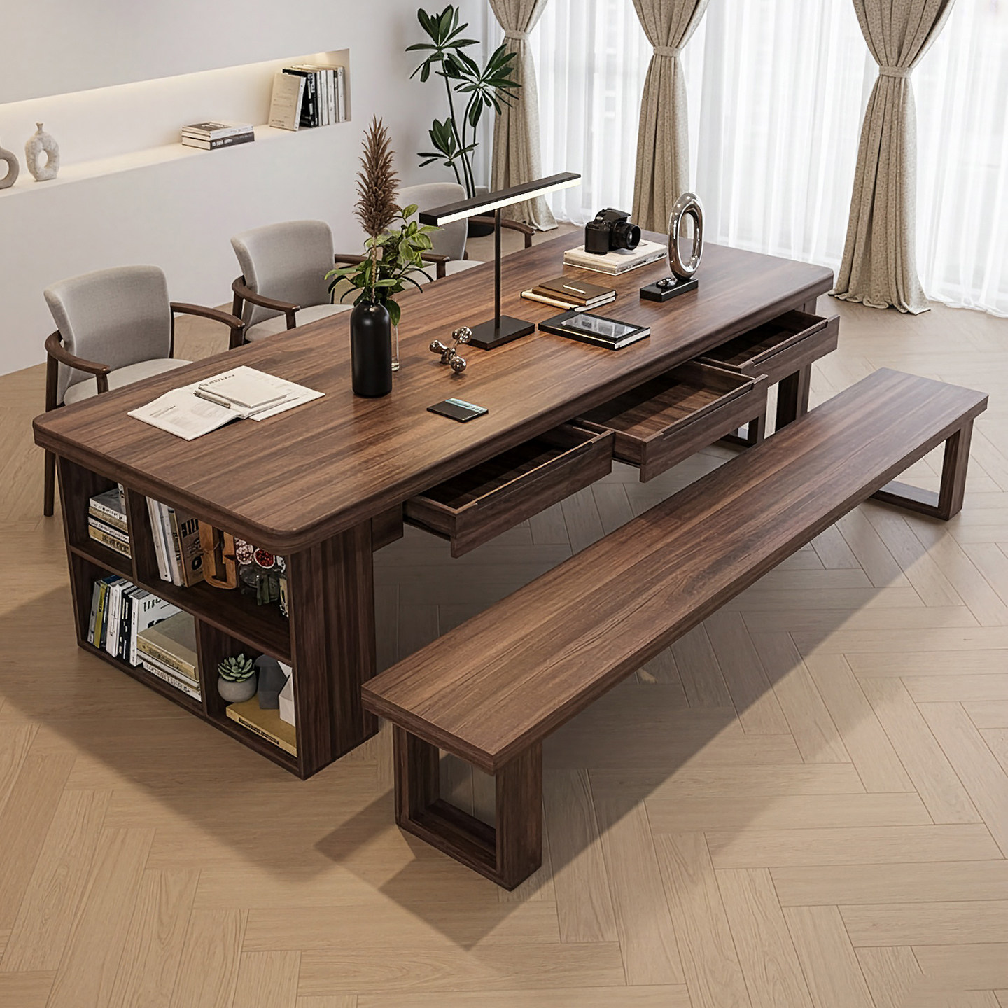 📚 去客厅化南美胡桃木茶桌书桌一体两用高端抽屉客厅办公桌家用茶台