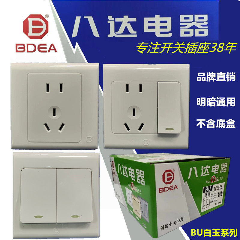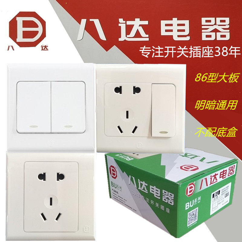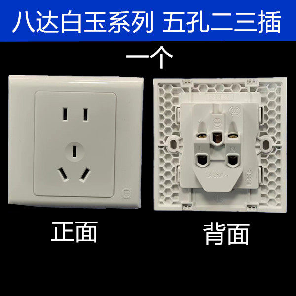 📚 八达大板开关插座墙体86型明暗装二三插一开关五孔白玉系俊朗松田