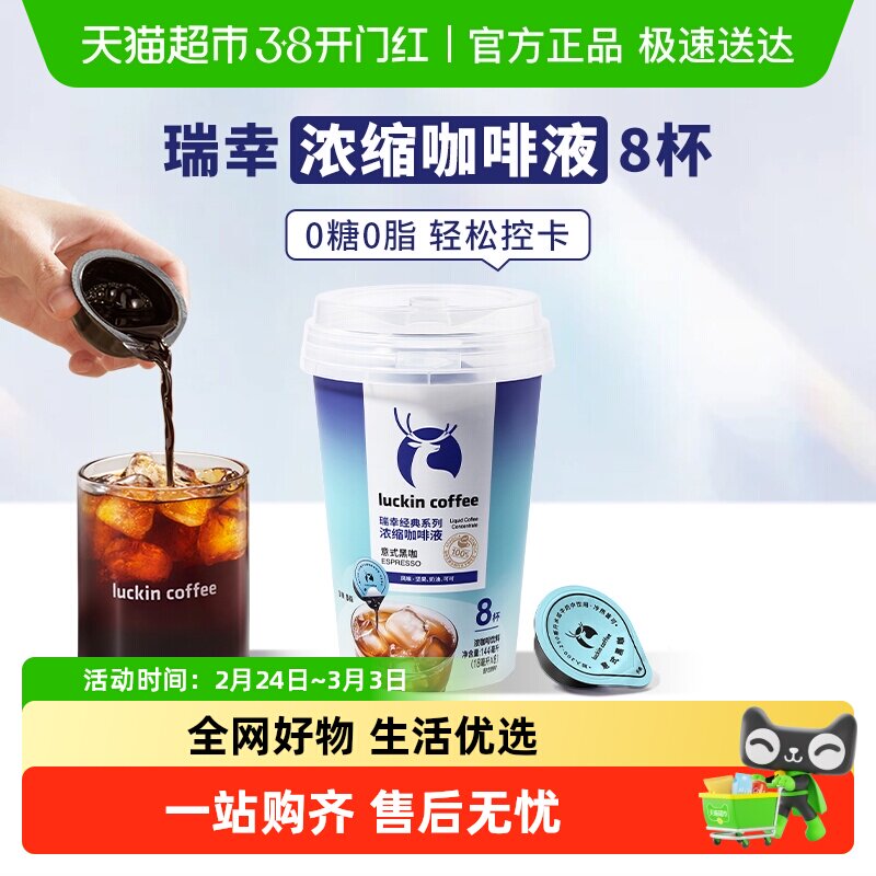 📚 瑞幸咖啡0糖0脂经典浓缩咖啡液意式黑咖美式坚果焦糖