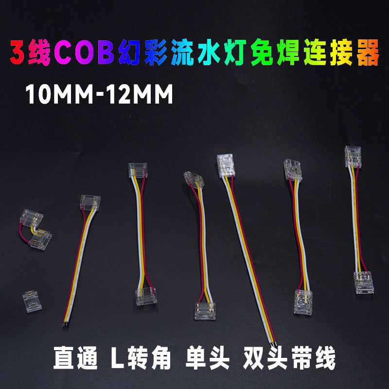 📚 3P透明免焊接头无暗区全彩跑马流水幻彩COB灯条免焊连接器L转角