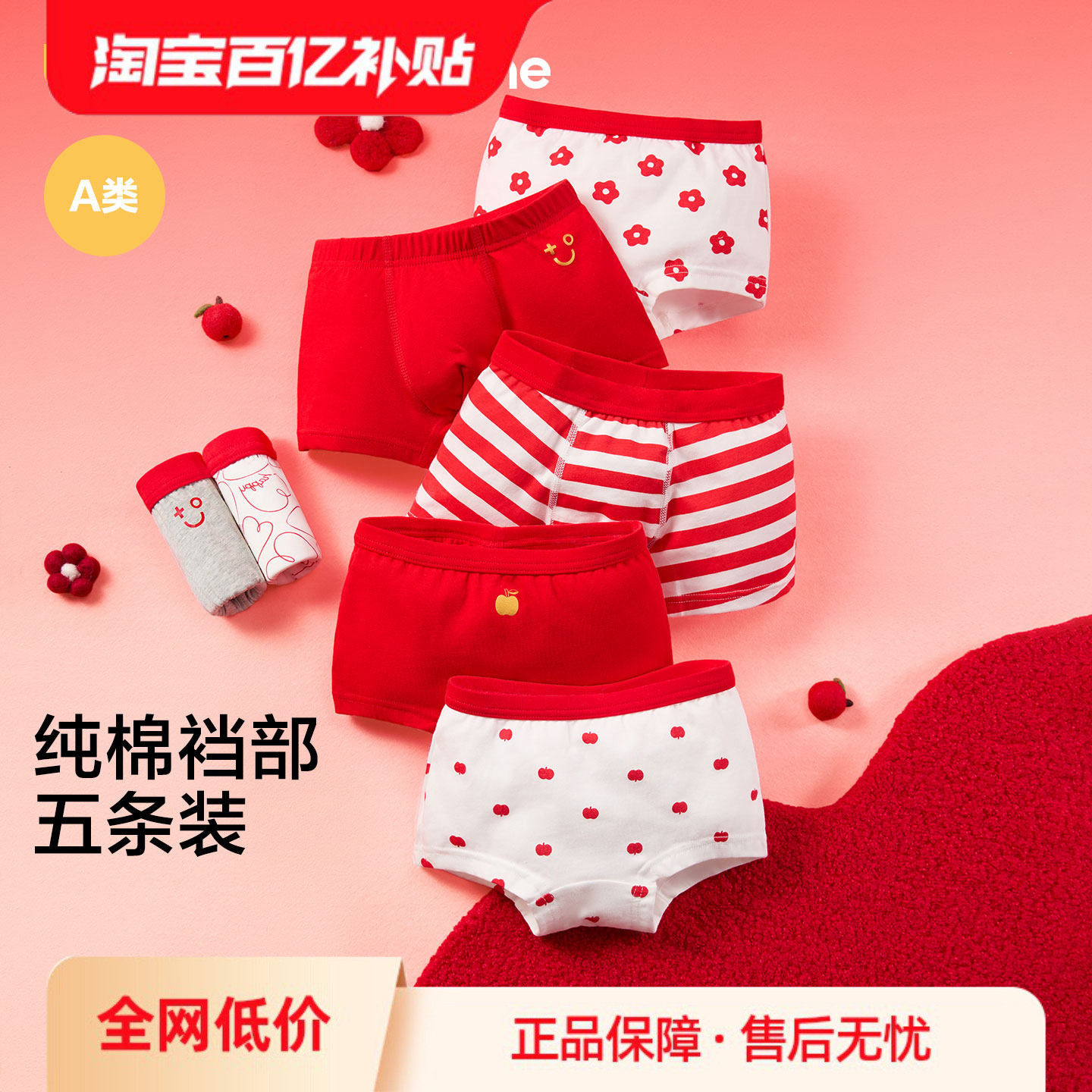📚 巴拉巴拉儿童内裤平角棉男童短裤女童四角裤本命年红色新年五条装