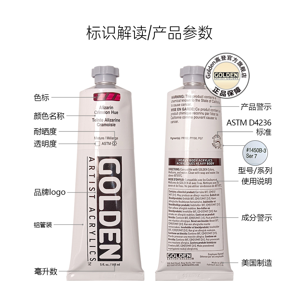 📚 高登Golden148ml系列1-3HB厚重型专业丙烯颜料高浓度 亚克力创作绘画颜料148ml单支