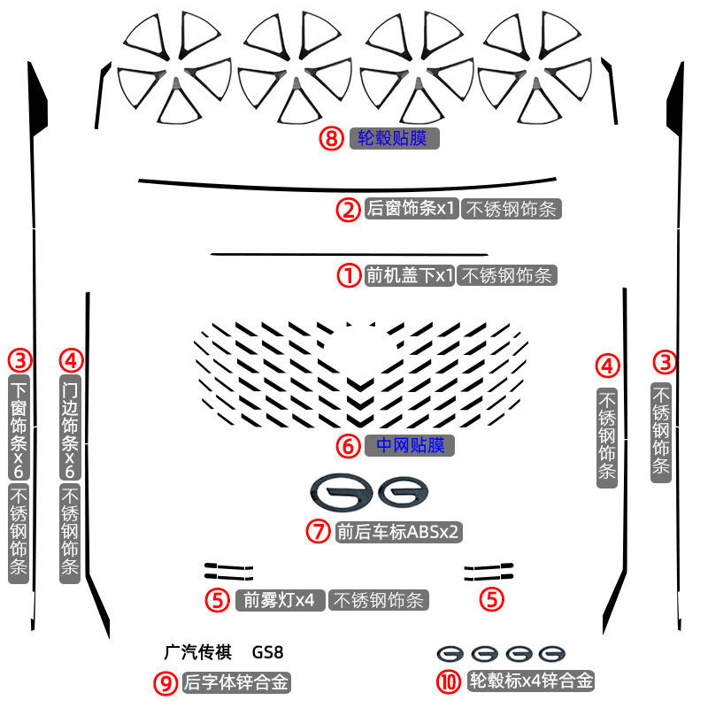 📚 适用22-25款传祺GS8黑武士套件领航车身黑化贴片贴膜专用外饰配件