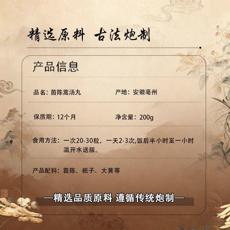 📚 茵陈蒿汤丸正品原材料茵陈栀子等熬制清除体内湿热降低血清胆红素