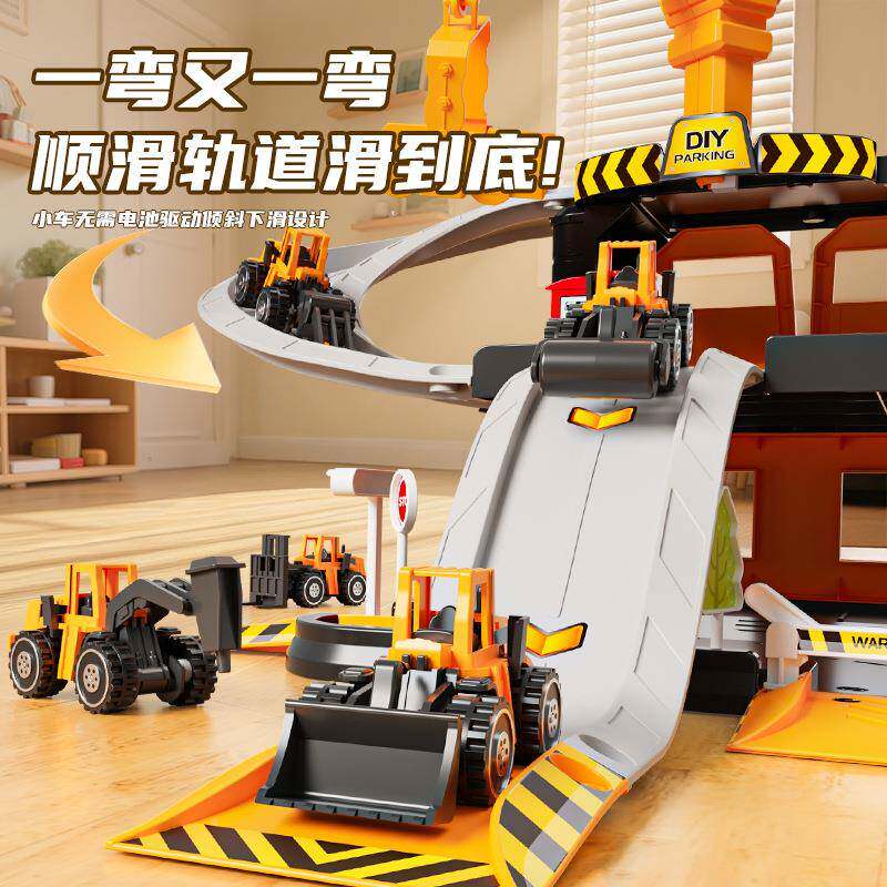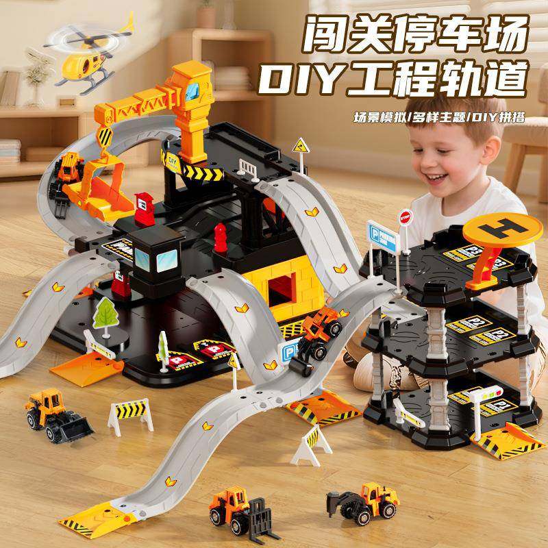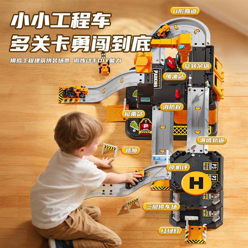 📚 儿真童双层降洗车轨215车道停车场套装仿轨道模型场景玩具合升金