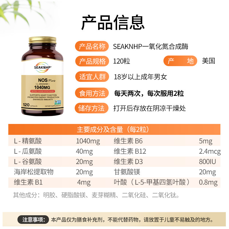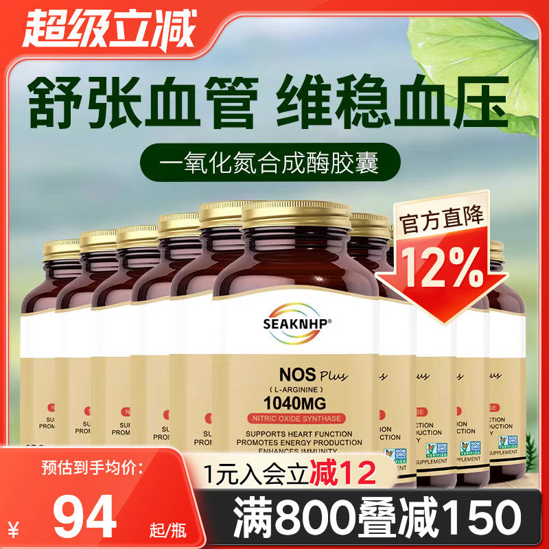 📚 10瓶装美国进口一氧化氮胶囊补充剂精氨酸瓜氨酸平衡维稳血压血脂