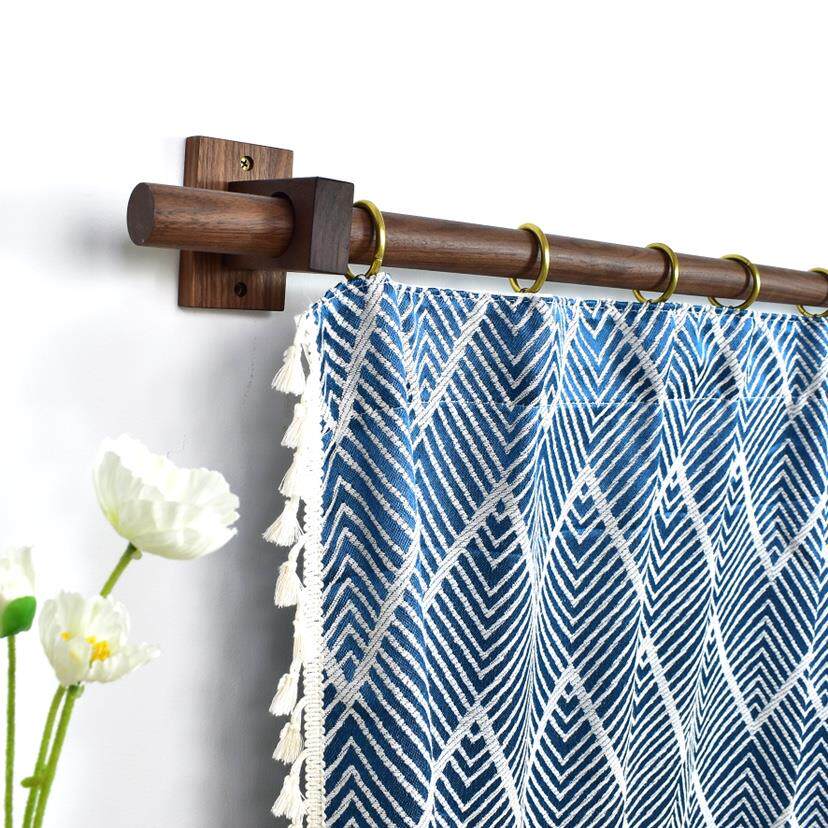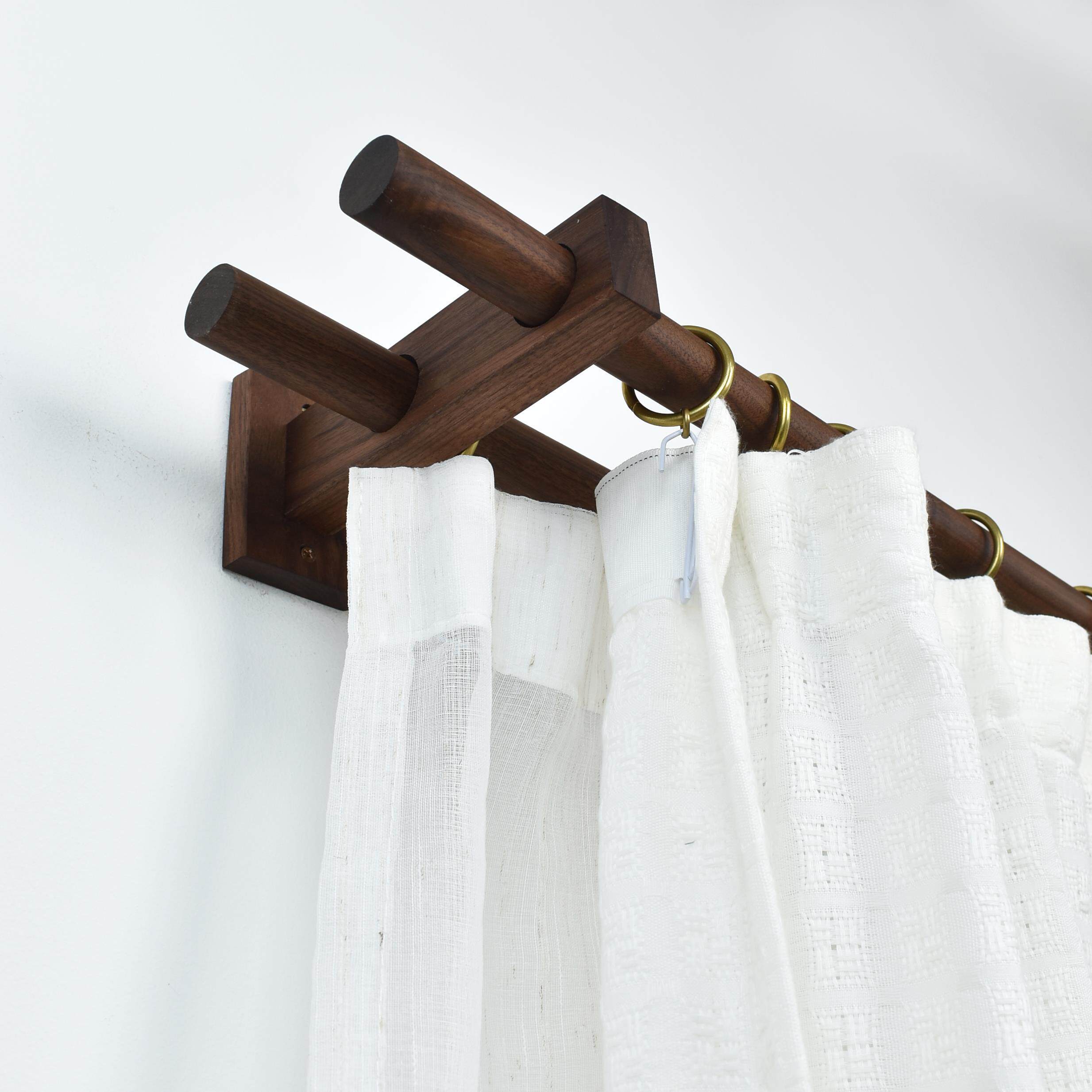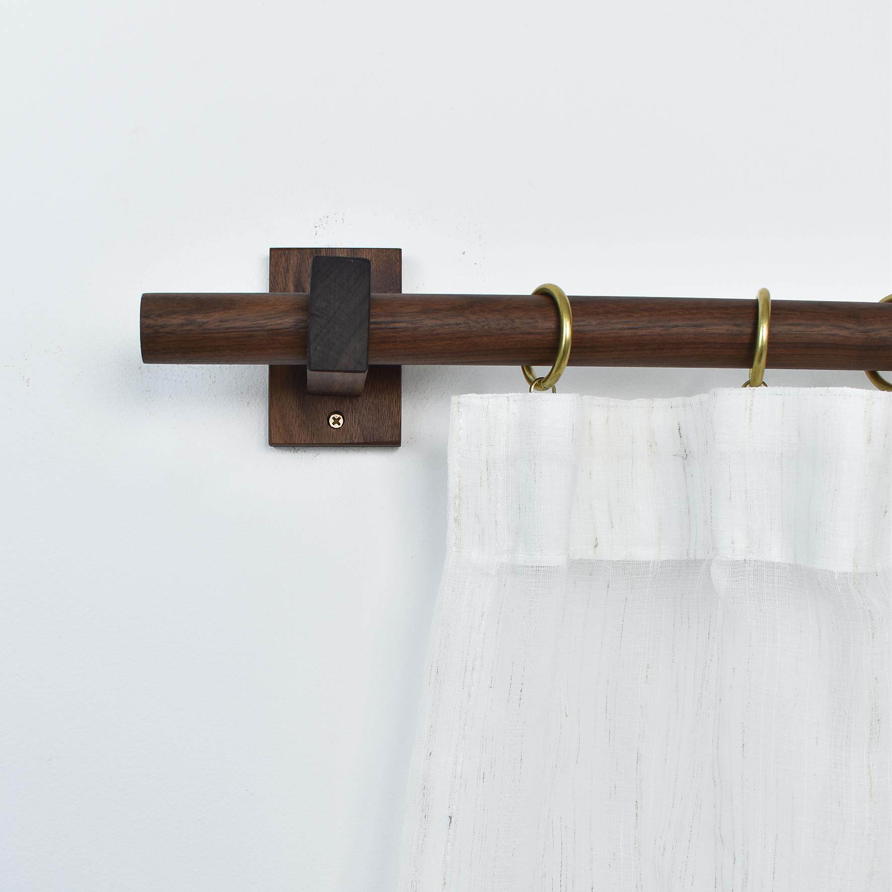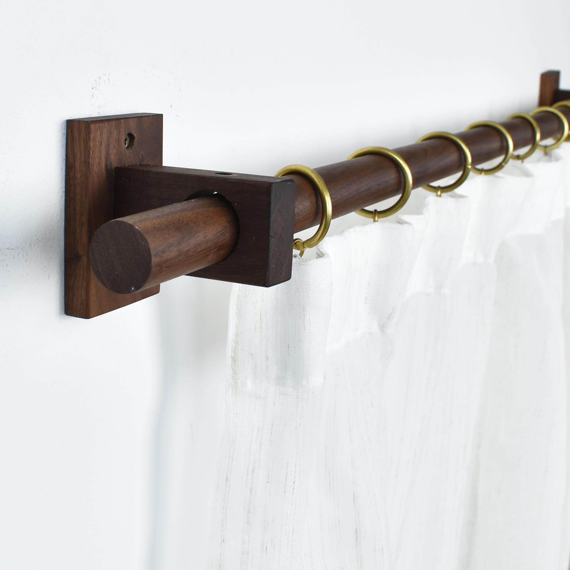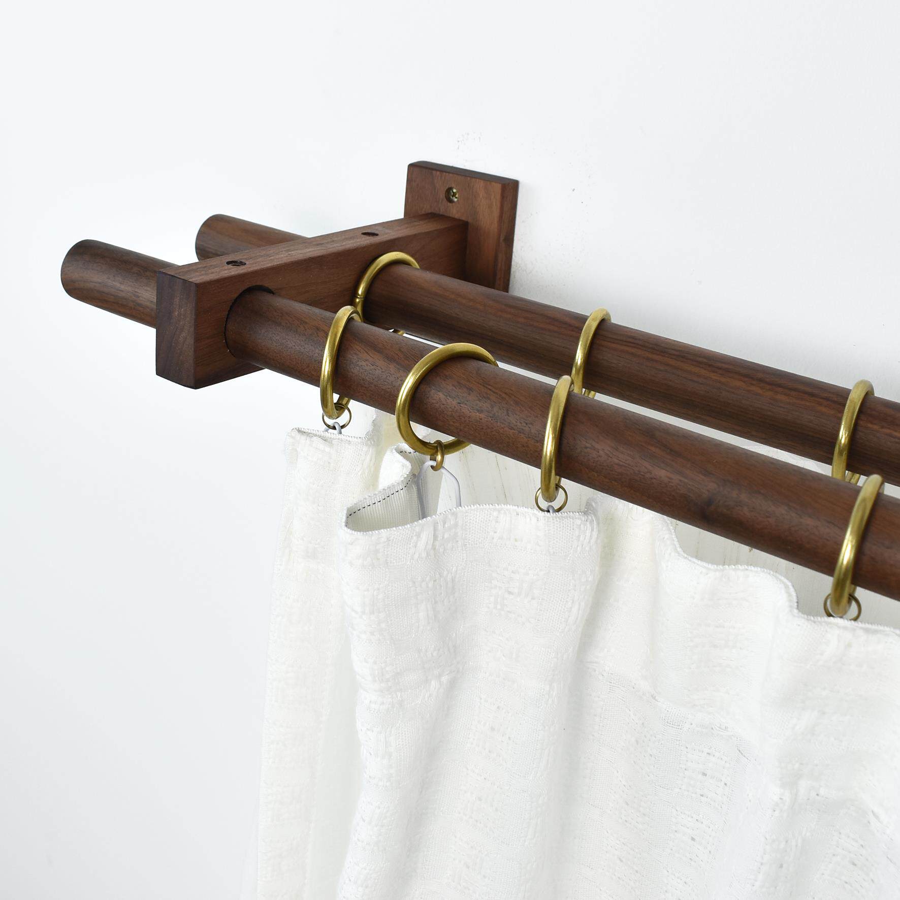 📚 黑胡桃原木实木质双单杆窗帘杆北欧日式门帘杆简约罗马杆支架打孔