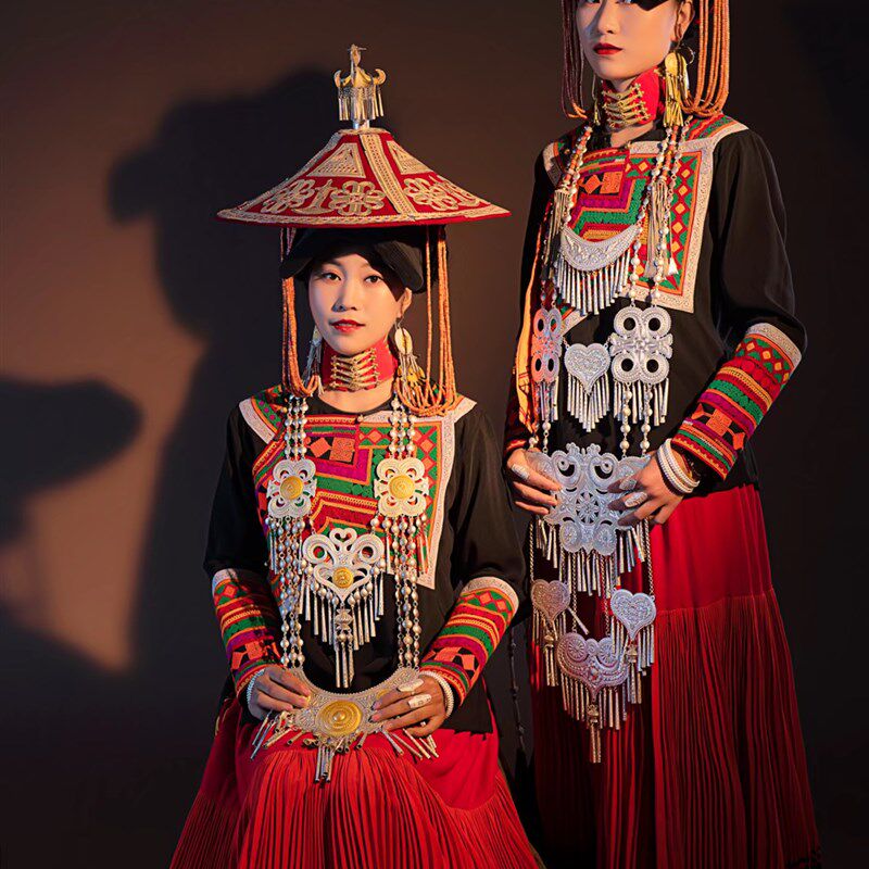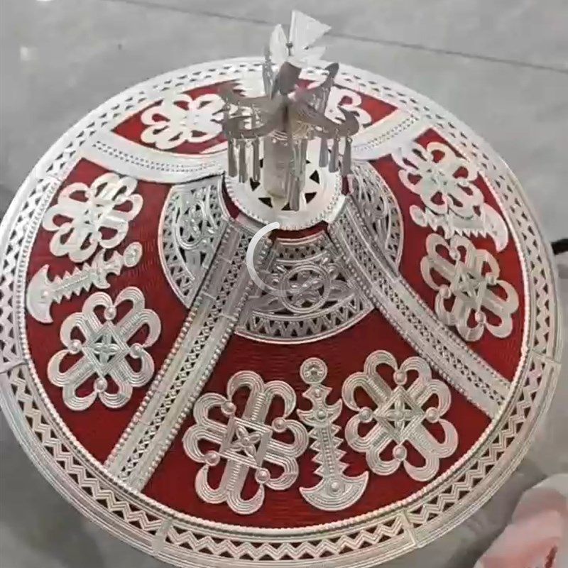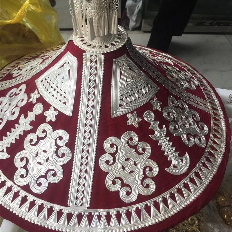 📚 凉山彝族女士服装配饰仿银美姑斗笠尖顶帽子新娘复古民族风摄影用
