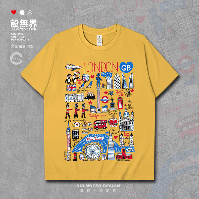 📚 英国首都伦敦白金汉宫塔桥著名地标涂鸦短袖T恤男女夏0017设 无界