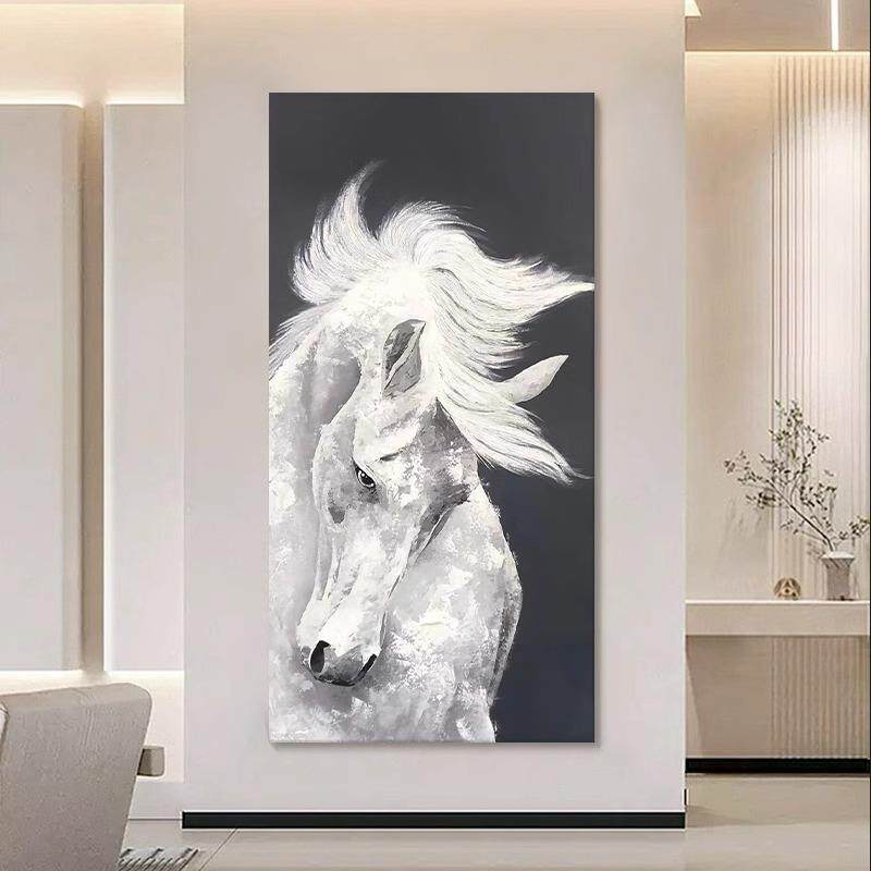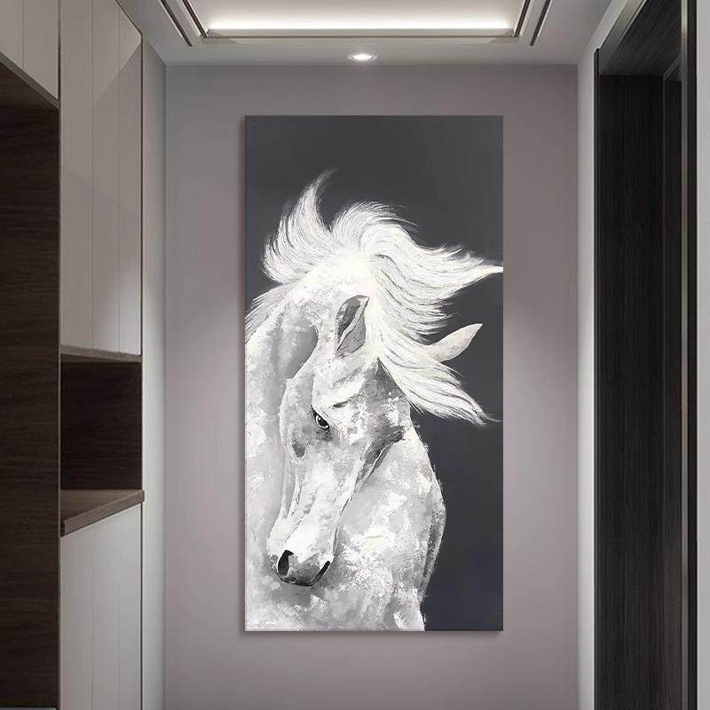 📚 国风玄关马到成功装饰壁画抽象俊马客厅黑白挂画卧室玄关沙发背景