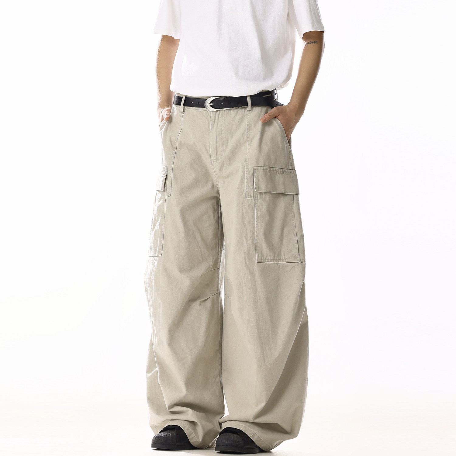 📚 美式复古街头工装休闲裤男女侧边大口袋设计感宽松解构阔腿长裤子