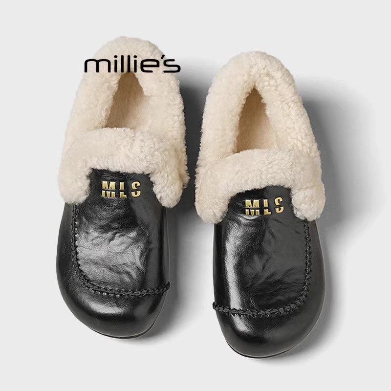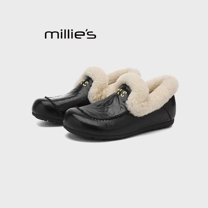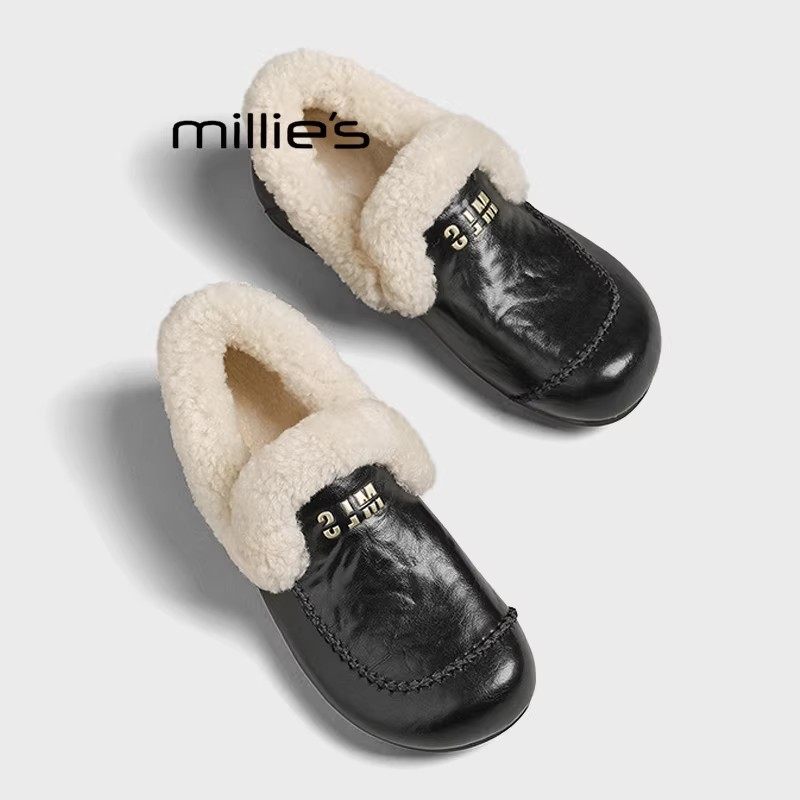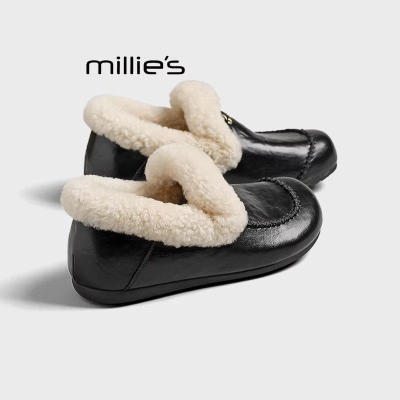 📚 MILLIE'S/妙丽圆头厚底英伦风时尚百搭日常通勤加绒乐福鞋冬季女