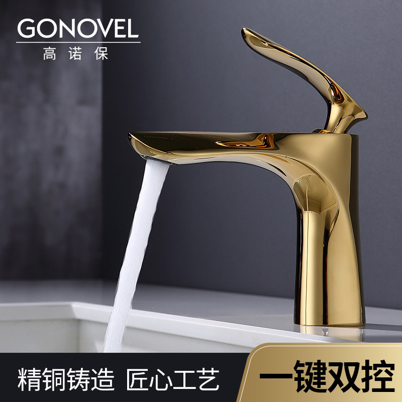 📚 高诺保金色面盆龙头卫生间台上盆浴室欧式冷热洗手盆洗脸盆水龙头