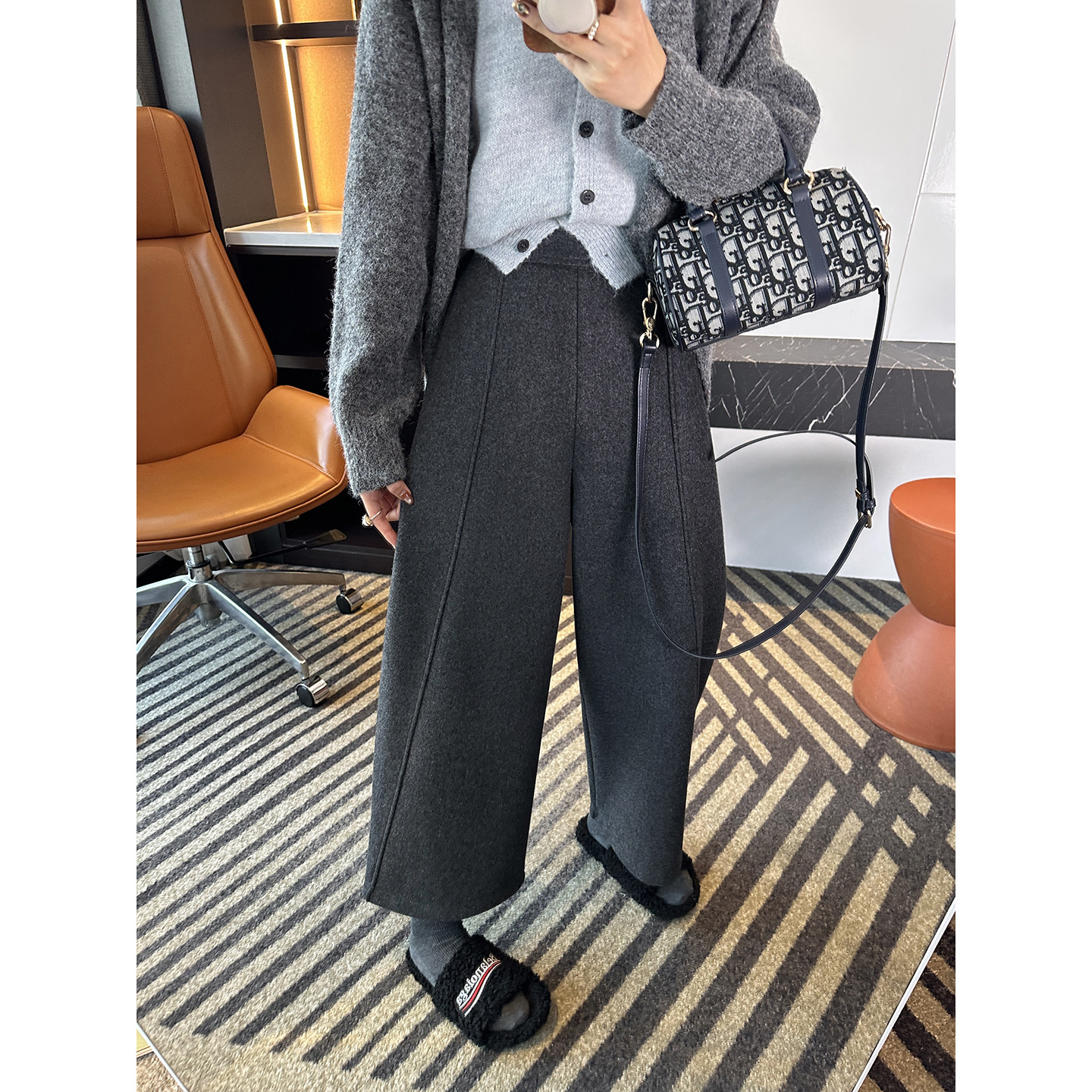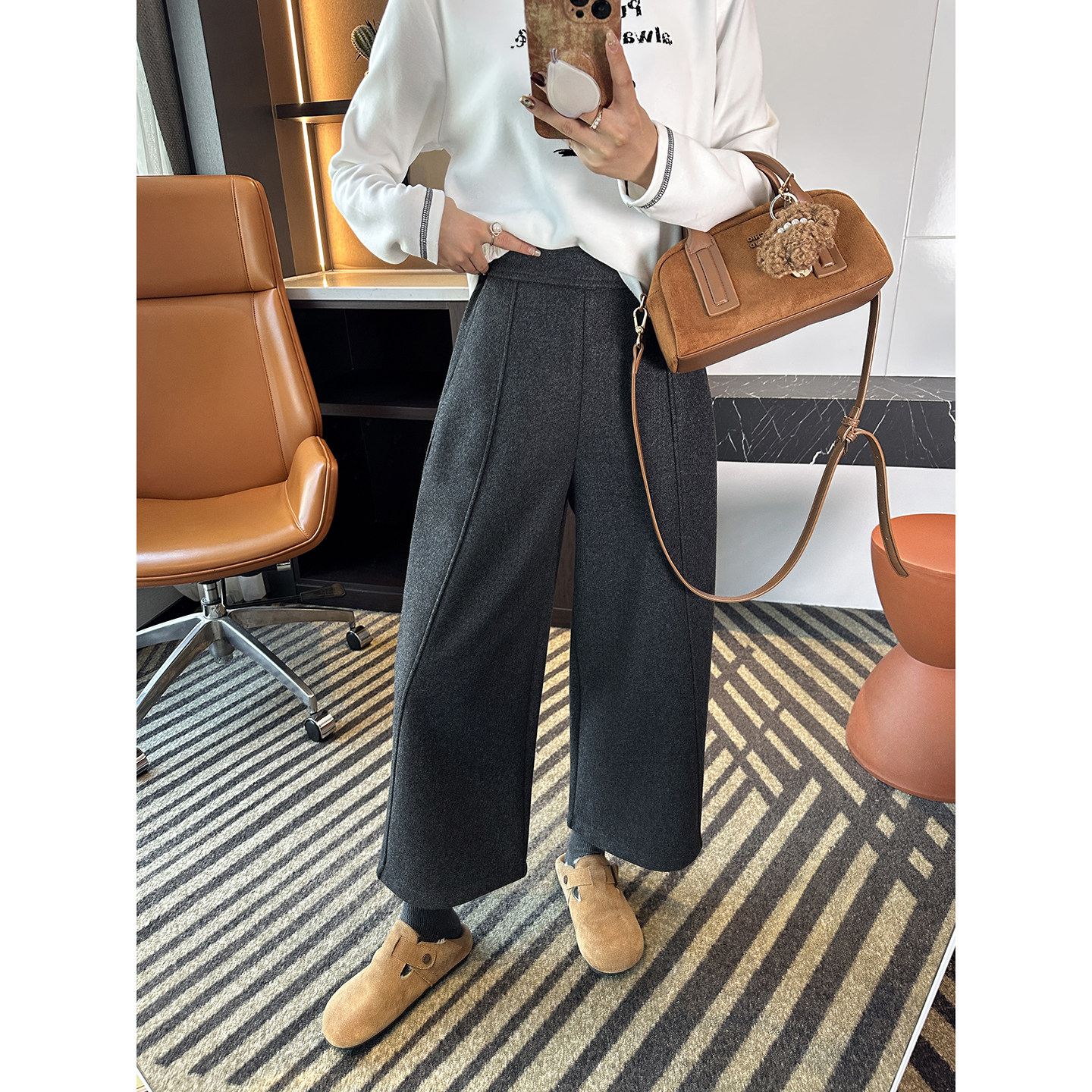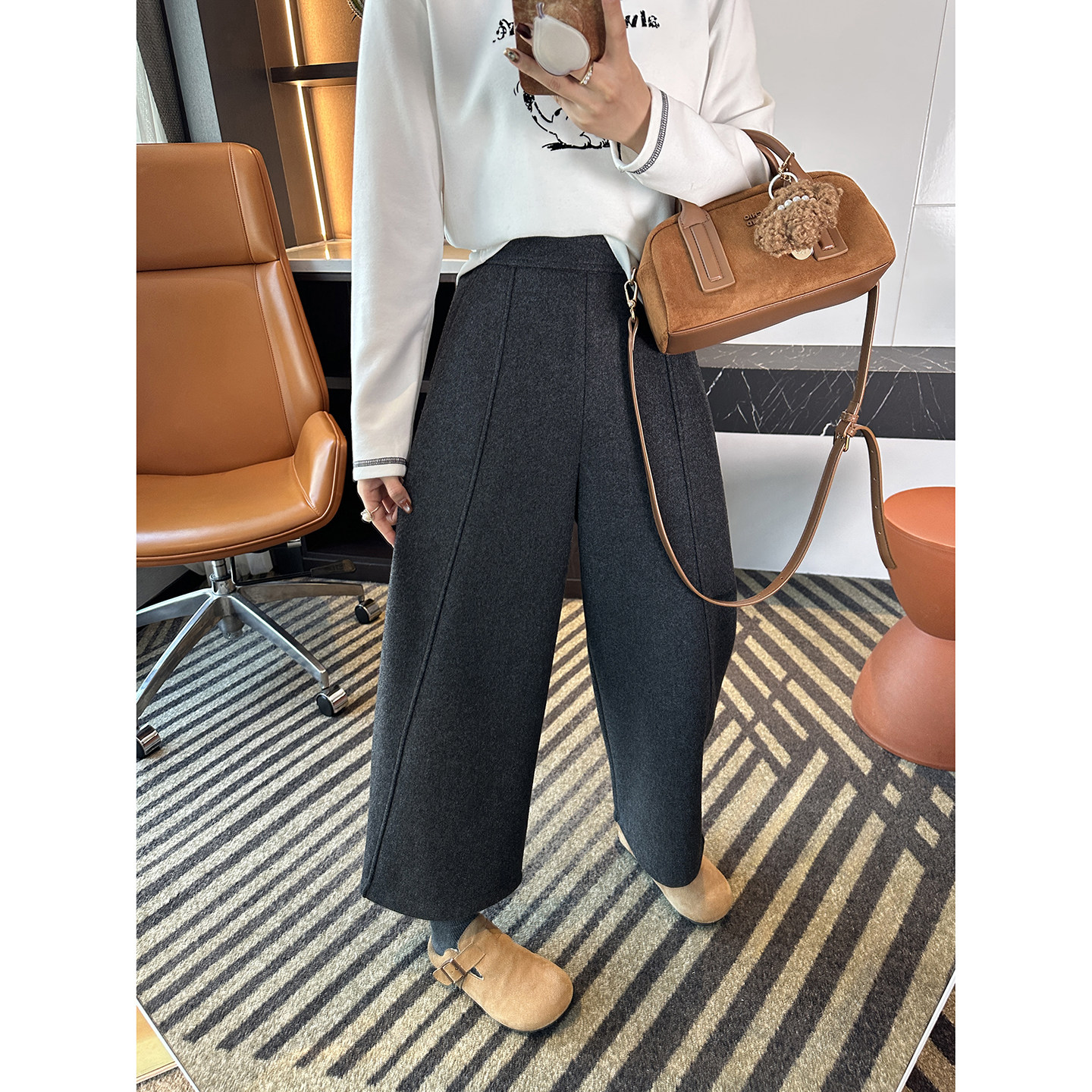 📚 小个子天菜!~密密绒羊毛八分休闲裤女秋冬新款宽松慵懒阔腿裤子