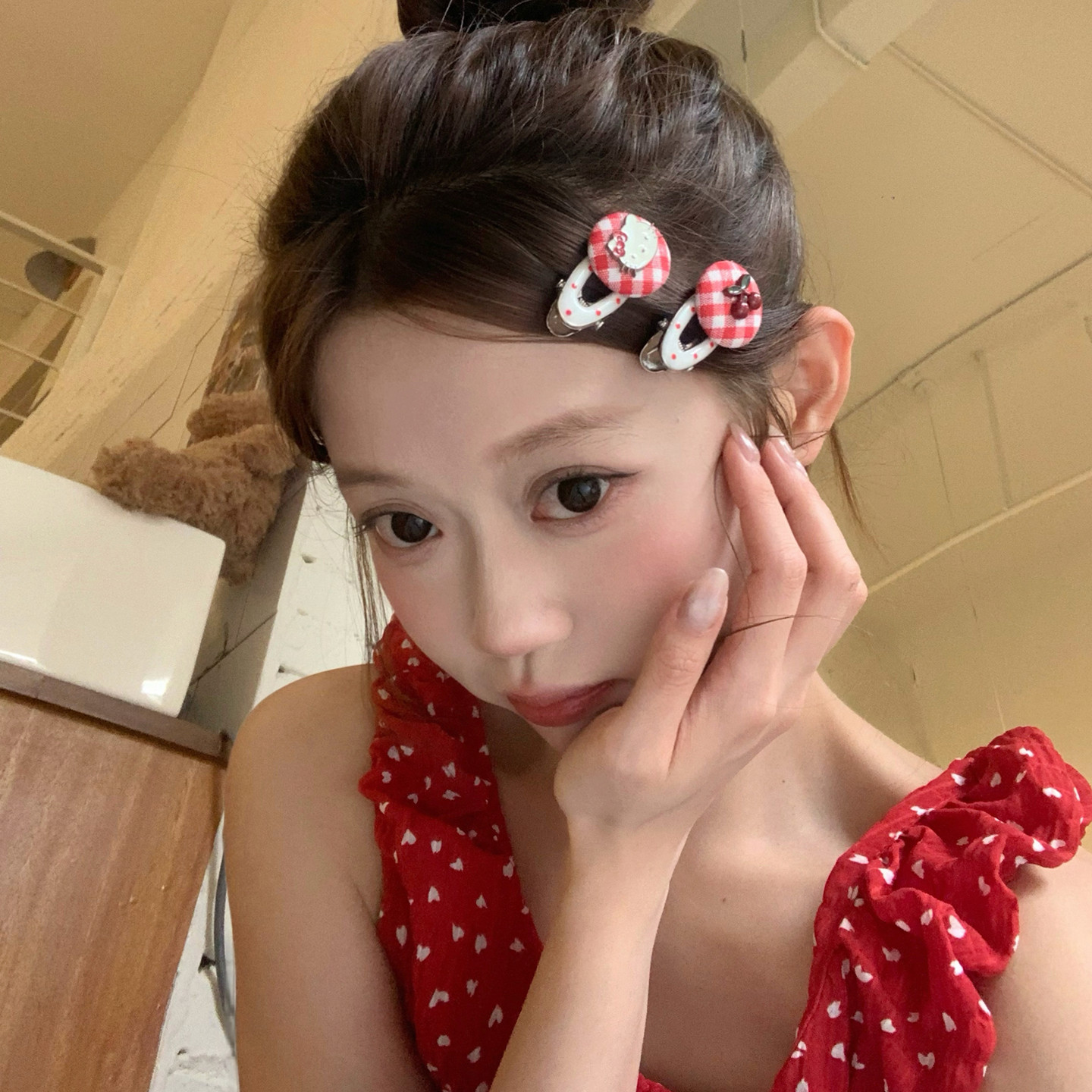 📚 2个装 猫咪蝴蝶结纽扣发夹鸭嘴夹少女心蝴蝶结波点发卡碎发刘海夹