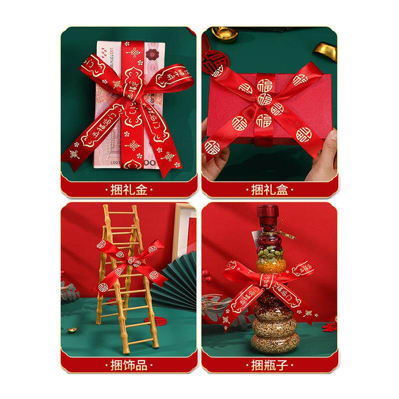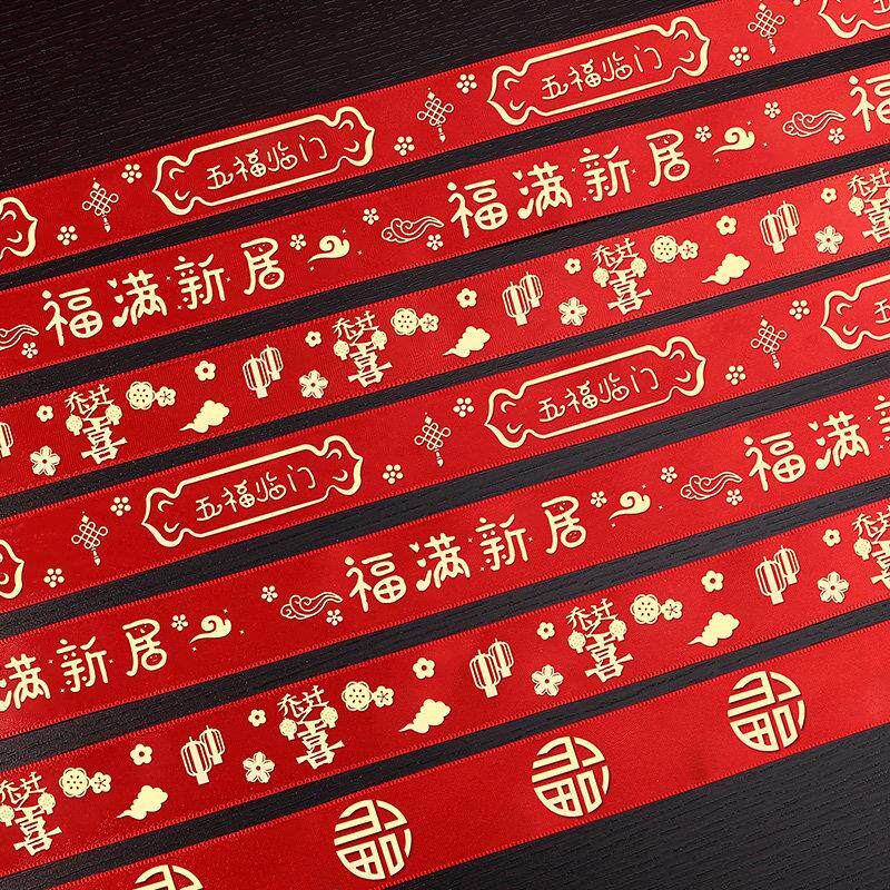 📚 垃圾桶结婚用乔迁之喜红丝带新居装饰红布条福字绑带绸带搬家入宅