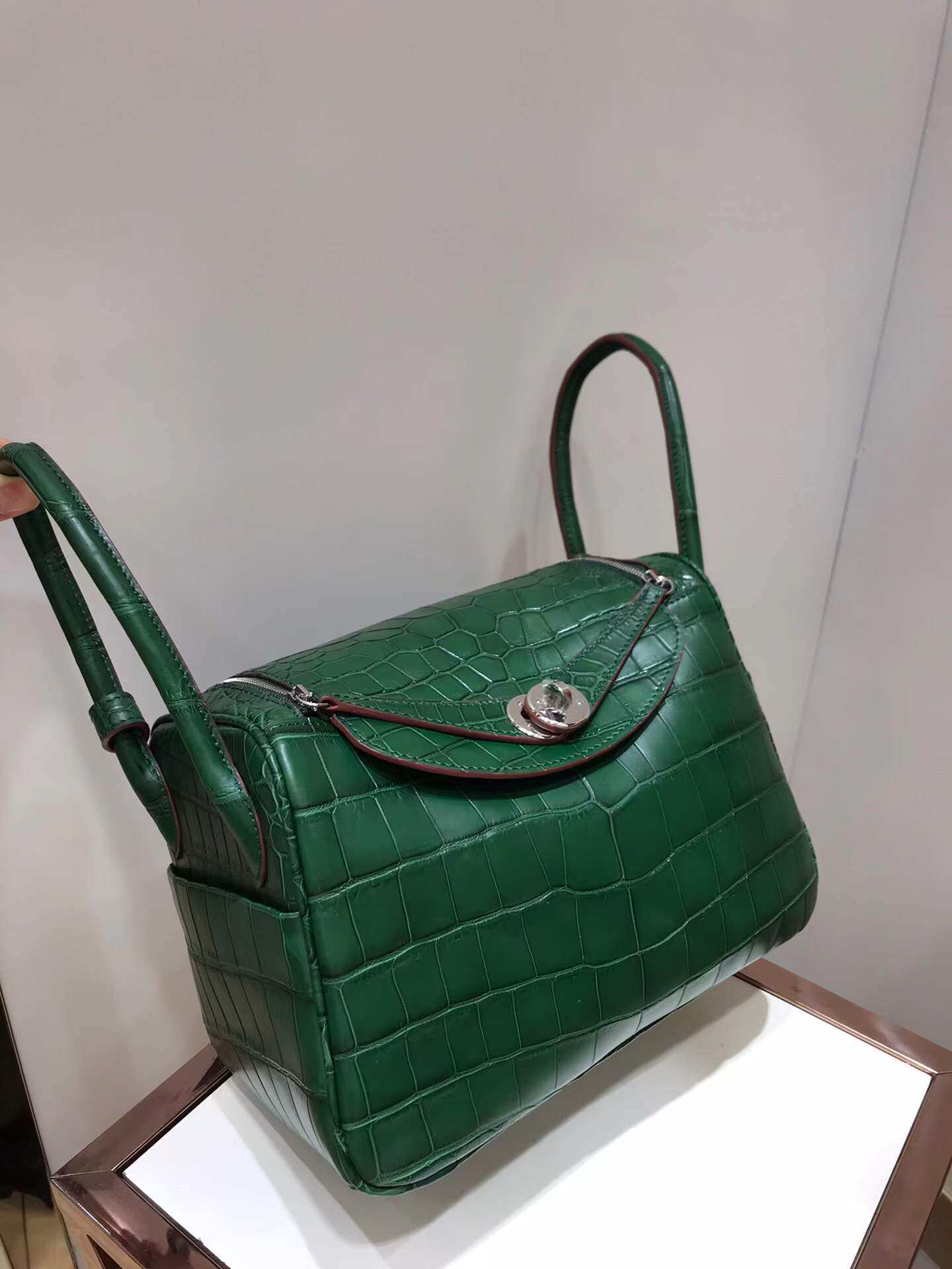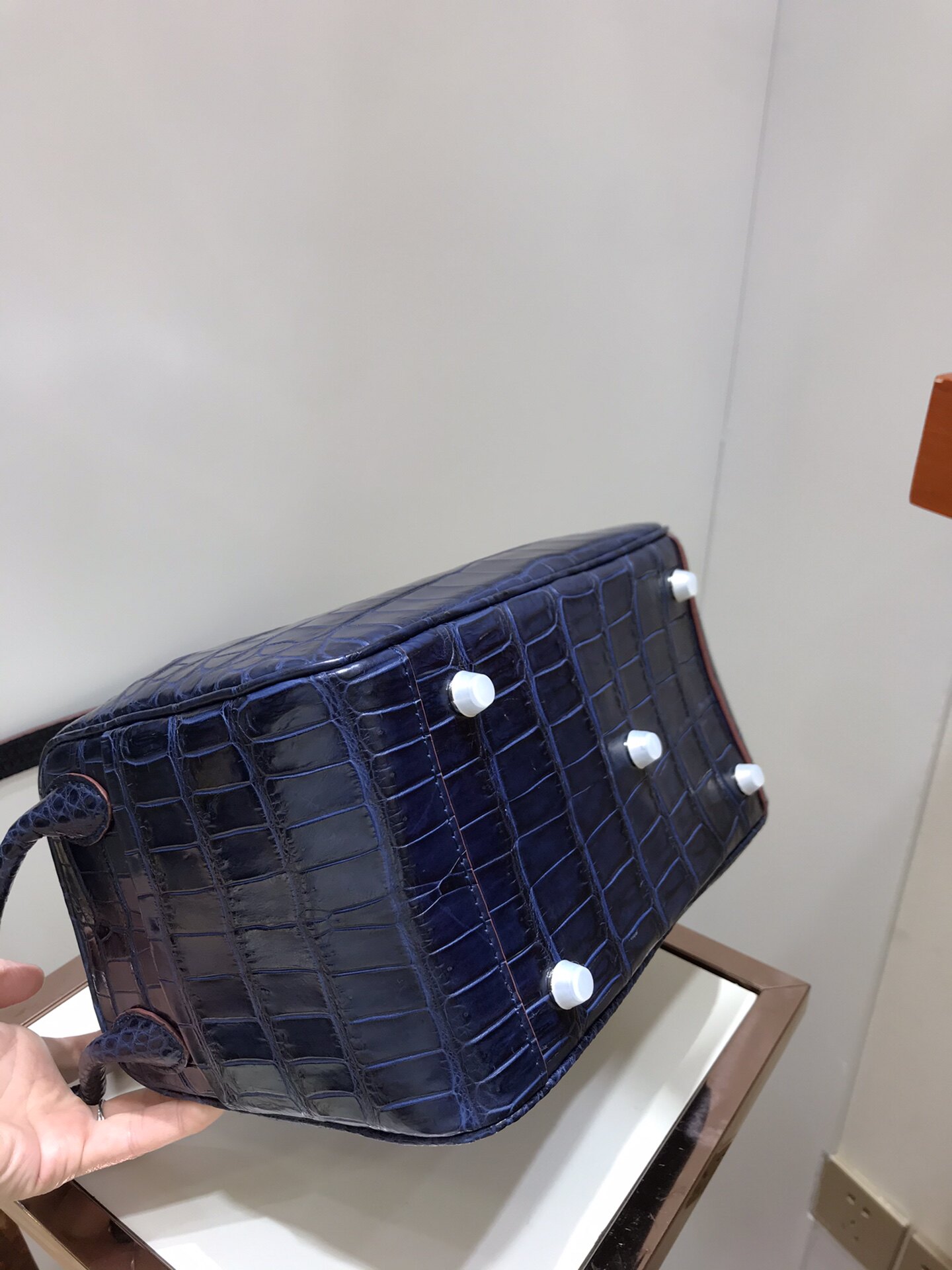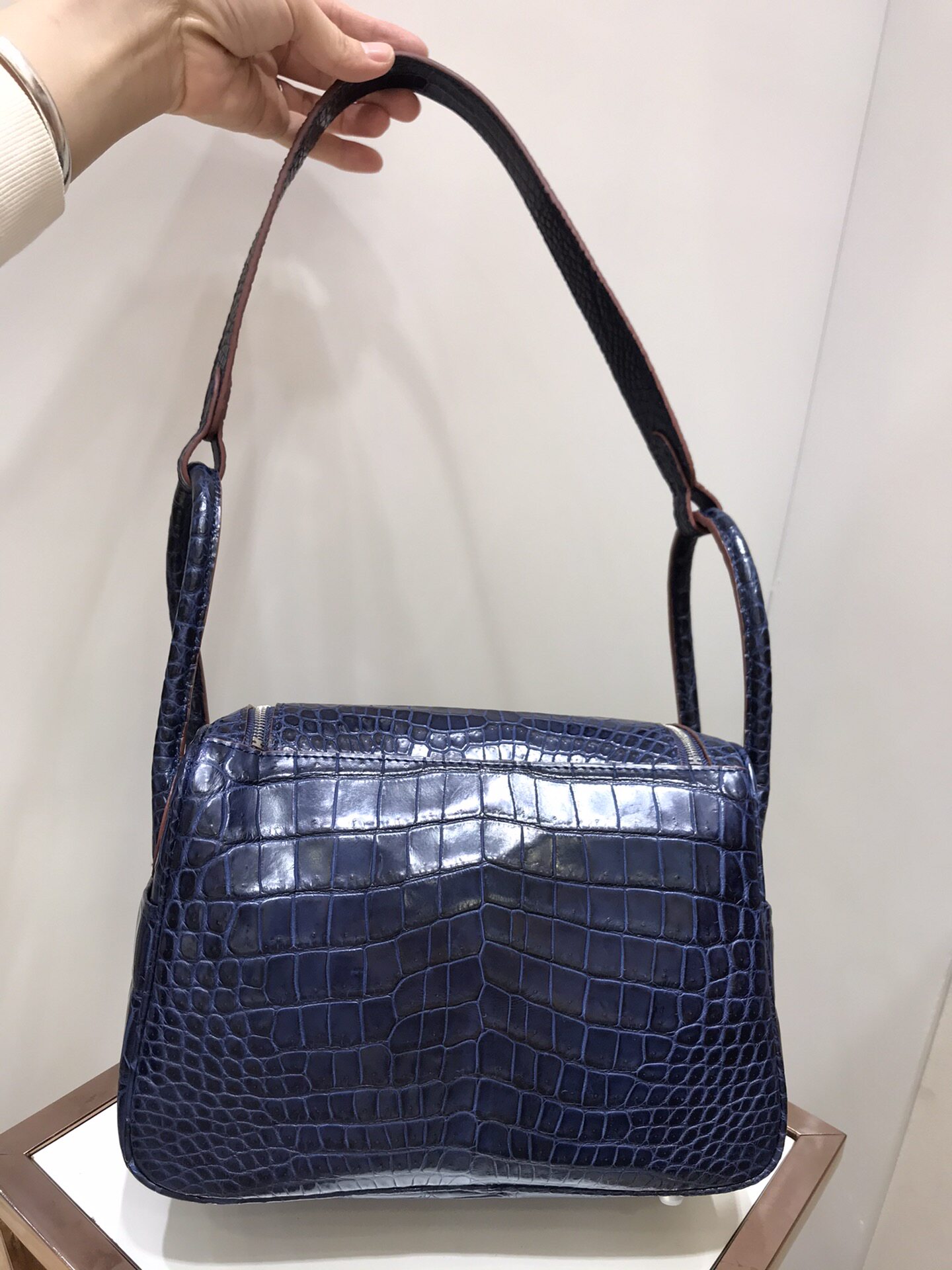 📚 进口鳄鱼皮肚皮手提女包林迪26CM蓝色女士2021新款女包真皮个性