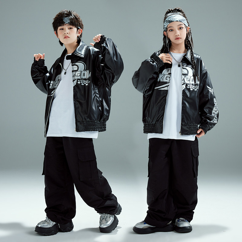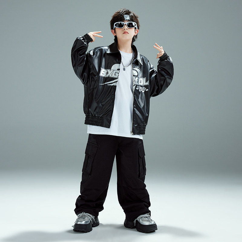 📚 街舞儿童潮服演出服男童套装hiphop童装少儿嘻哈爵士走秀皮衣外套