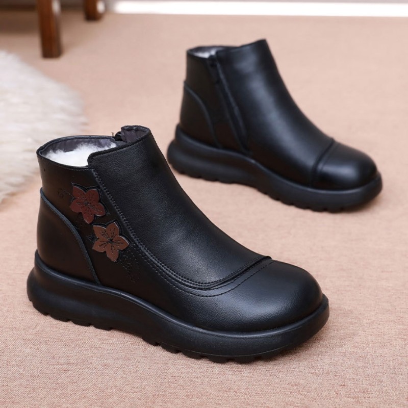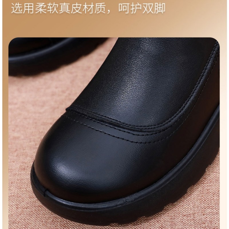 📚 中老年皮棉鞋女真皮加绒保暖妈妈鞋防滑软底老人老太太棉皮鞋冬季