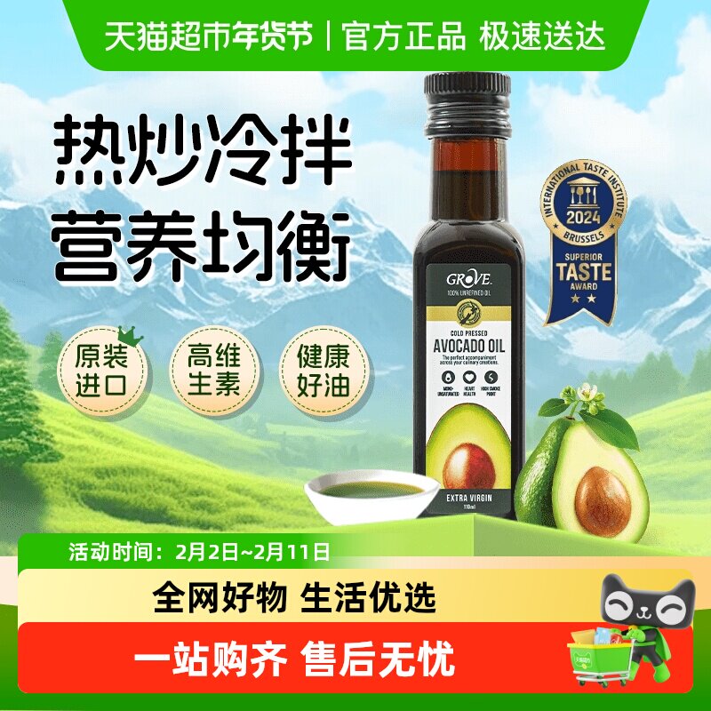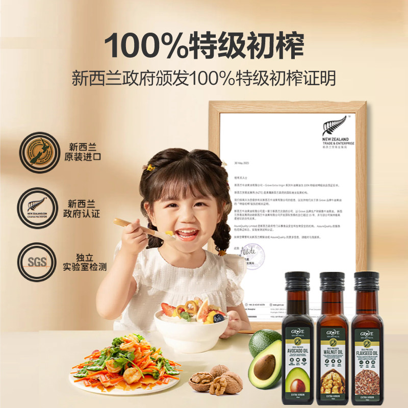 📚 新西兰进口GROVE格露芙牛油果核桃亚麻籽油宝宝辅食用油热炒凉拌
