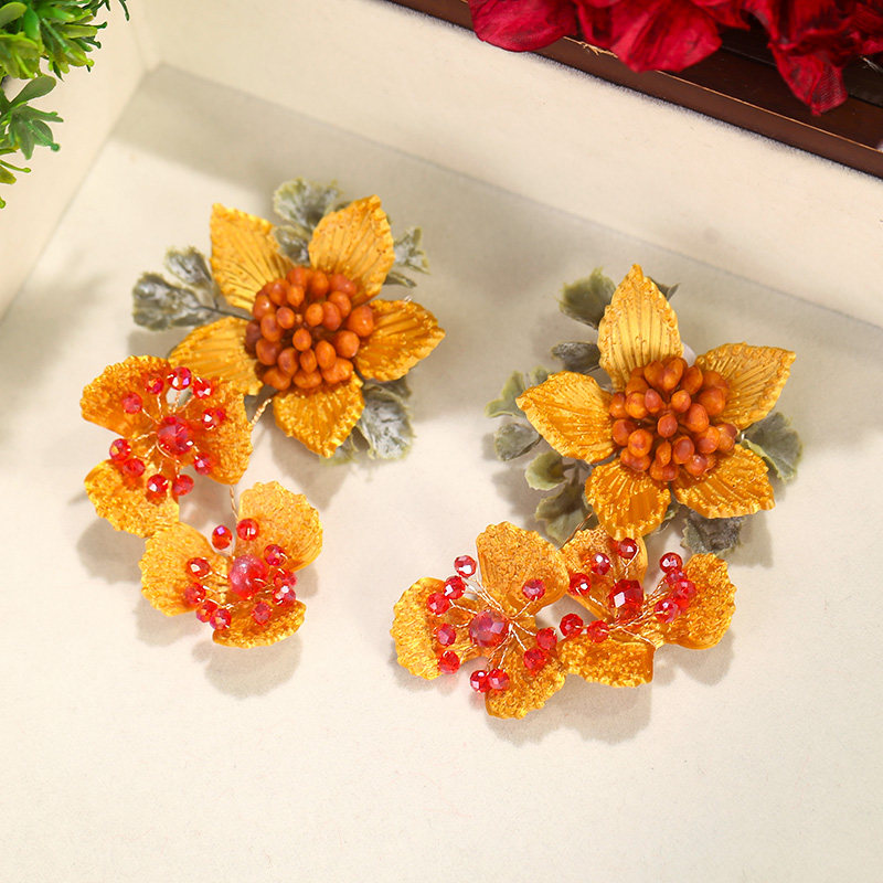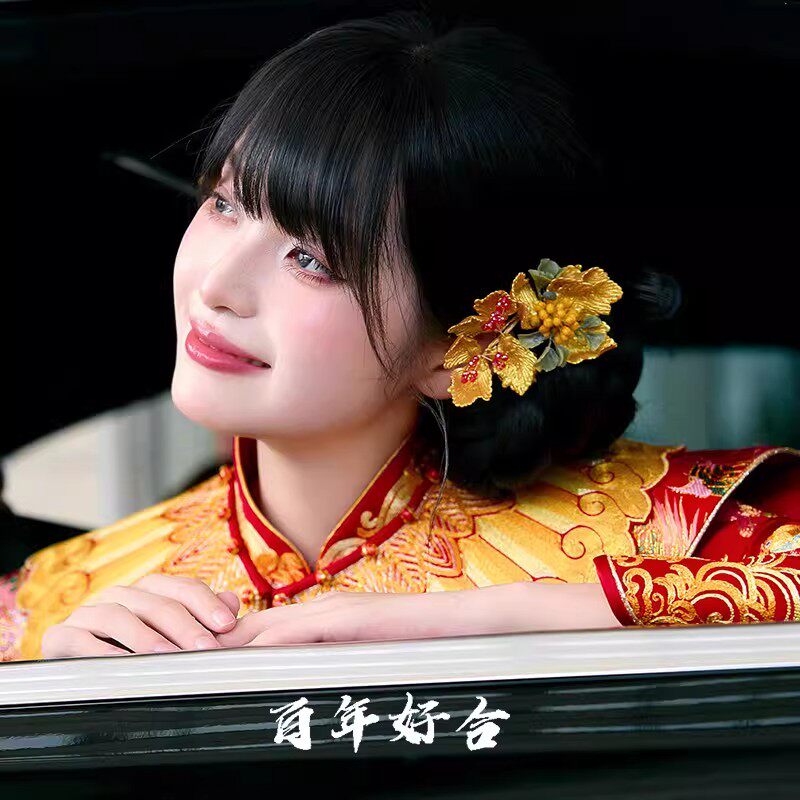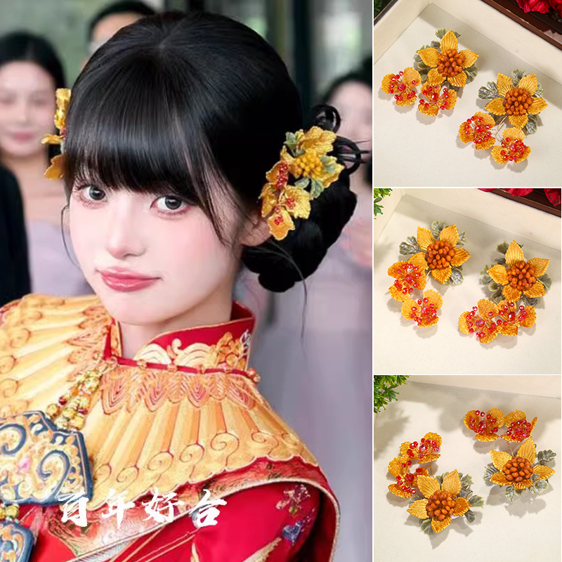 📚 古典金色花朵侧边夹新中式新娘头饰秀禾敬酒服旗袍龙凤褂配饰发饰