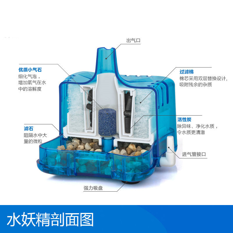 📚 鱼缸水妖精吸便器过滤器材料静音水族箱反气举小型增氧气泵三合一