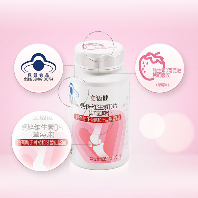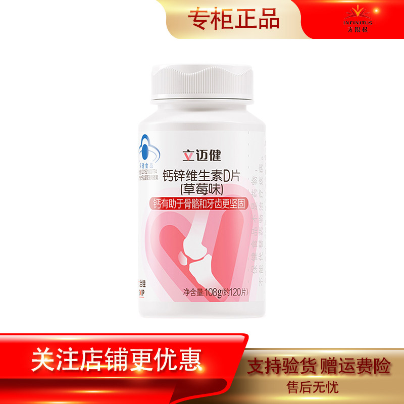 📚 无限极钙片120粒/瓶钙锌维生素D片巧克力味草莓味成人儿童补充钙