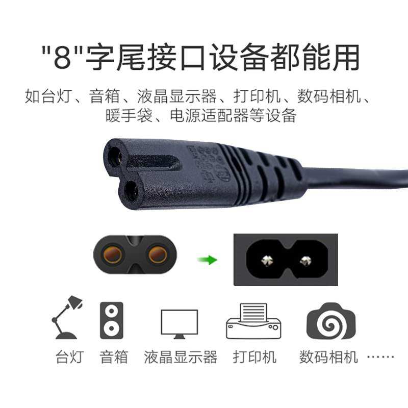 📚 久量DP6001充电折叠台灯白色电源线两脚8字型2孔插头插线220V