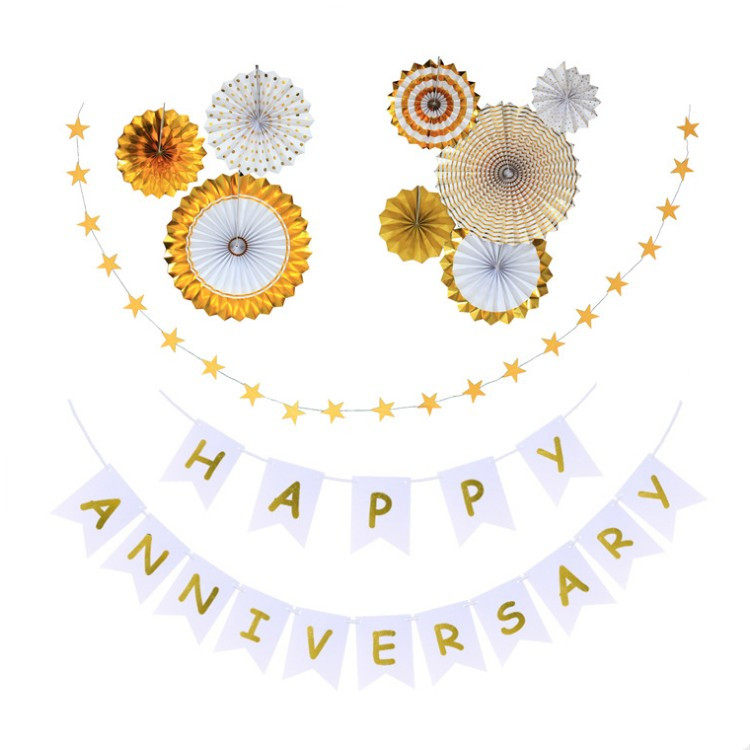 📚 热卖 HAPPY ANNIVERSARY 结婚周年纪念日 装饰拉旗 甜品台背景