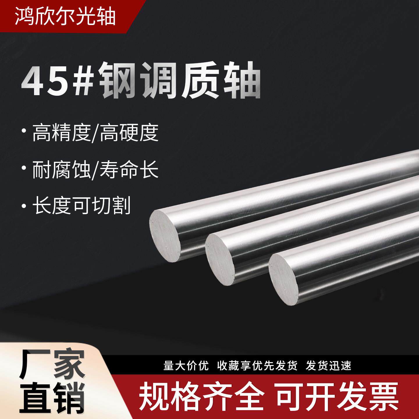 📚 45#钢调质圆棒 调质磨光棒研磨棒光杆圆钢冷拉光圆 调质轴可定制
