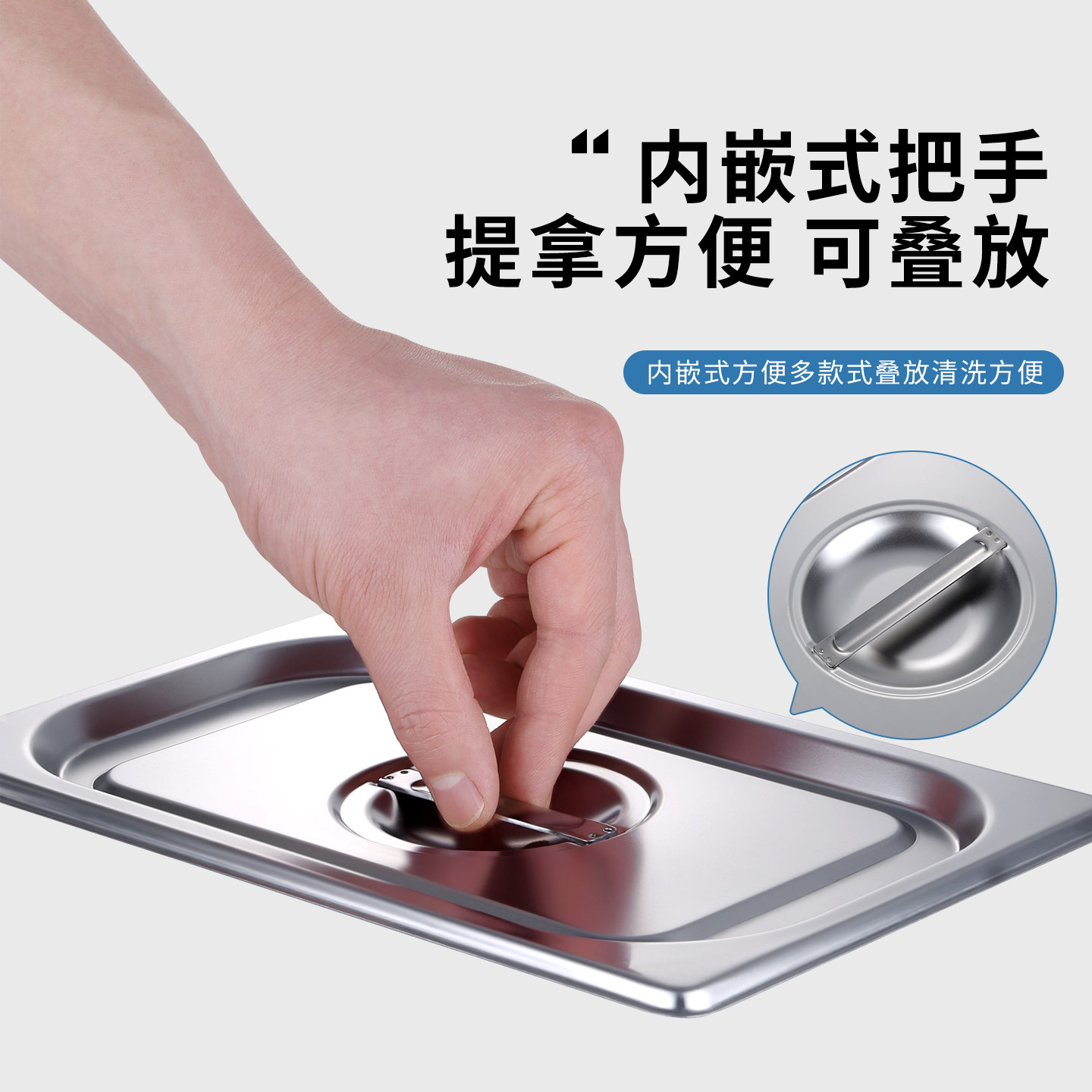📚 带槽口份数盆盖子长方形不锈钢菜盆盖冰淇淋奶茶果酱盒盖带闭口盖