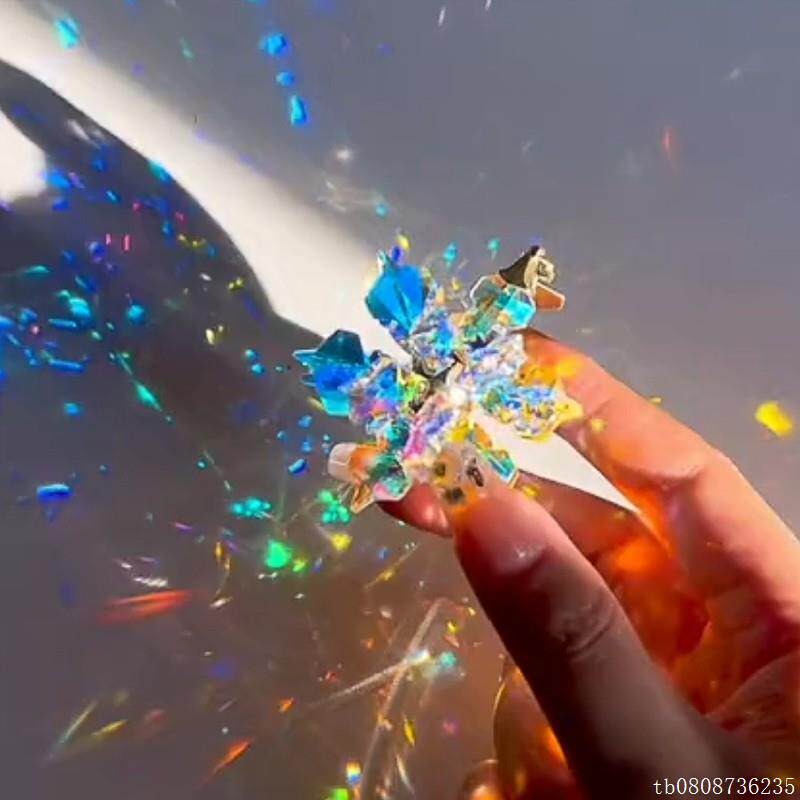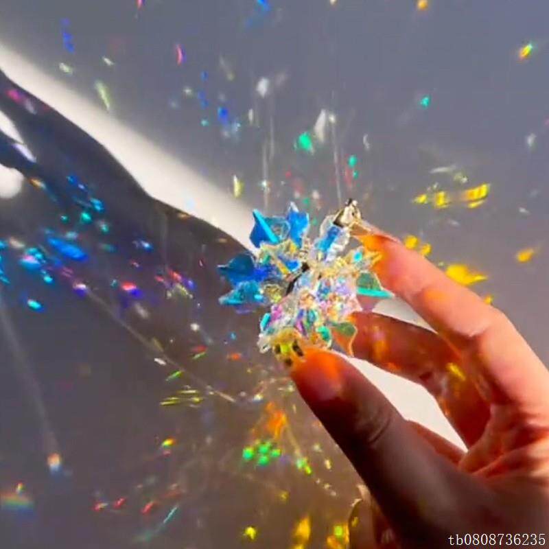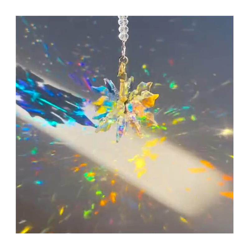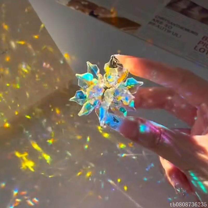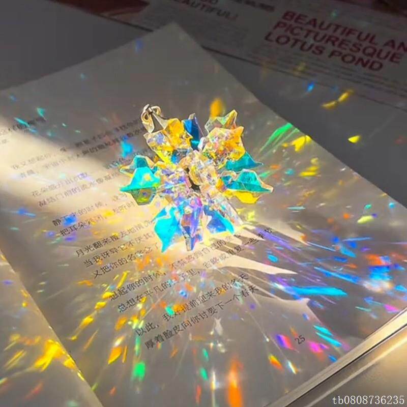 📚 太阳捕手晶体雪花立体棱光镜水晶花项链创意流光水晶挂件铺手棱镜