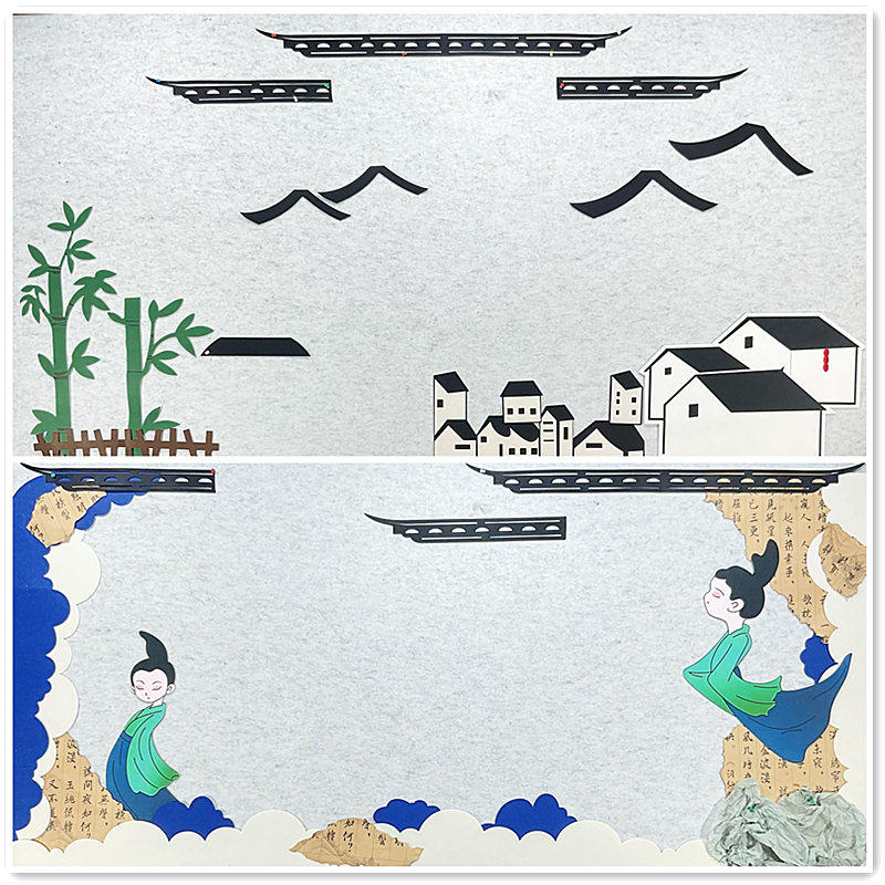📚 新中式国风系列小学黑板报大墙贴幼儿园环创布置装饰材料毛毡墙贴