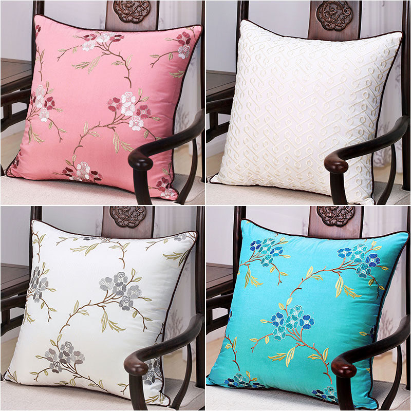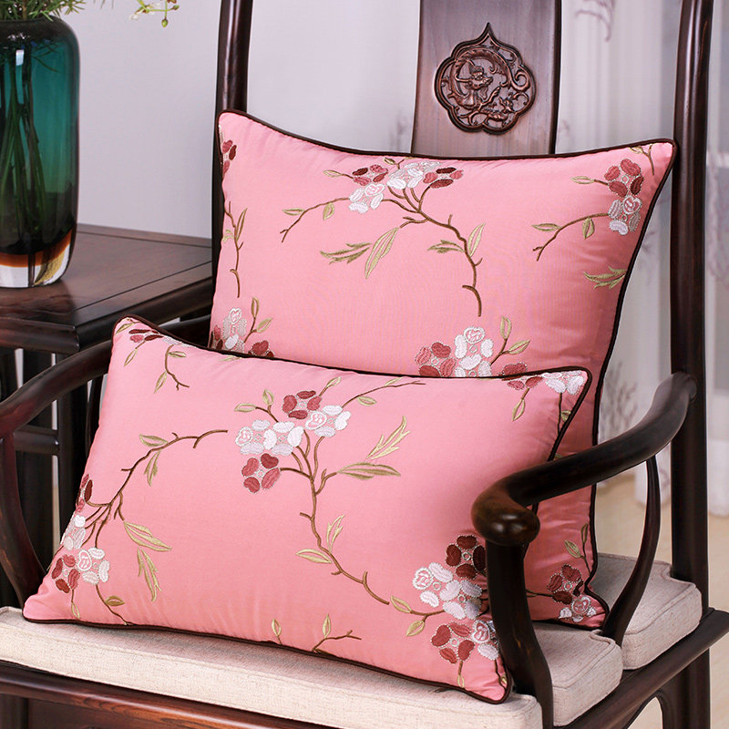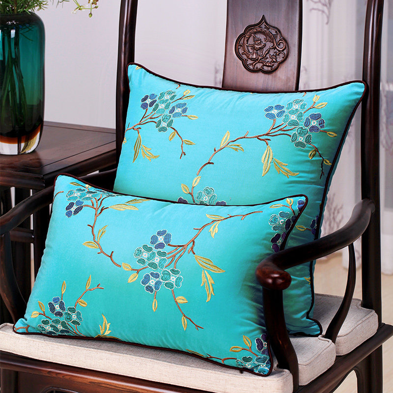 📚 布一堂现代中式绣花沙发抱枕靠垫1113床头大靠枕套腰靠背含芯
